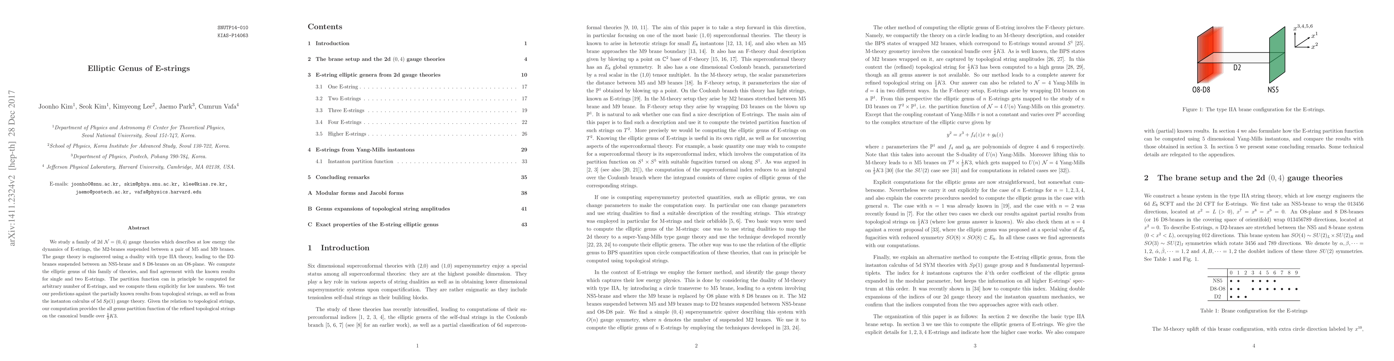 We study a family of 2d N=(0,4) gauge theories which describes at low energy the dynamics of E-strings, the M2-branes suspended between a pair of M5 and M9 branes. The gauge theory is engineered using a duality with type IIA theory, leading to the D2-branes suspended between an NS5-brane and 8 D8-branes on an O8-plane. We compute the elliptic genus of this family of theories, and find agreement with the known results for single and two E-strings. The partition function can in principle be computed for arbitrary number of E-strings, and we compute them explicitly for low numbers. We test our predictions against the partially known results from topological strings, as well as from the instanton calculus of 5d Sp(1) gauge theory. Given the relation to topological strings, our computation provides the all genus partition function of the refined topological strings on the canonical bundle over 1/2 K3.