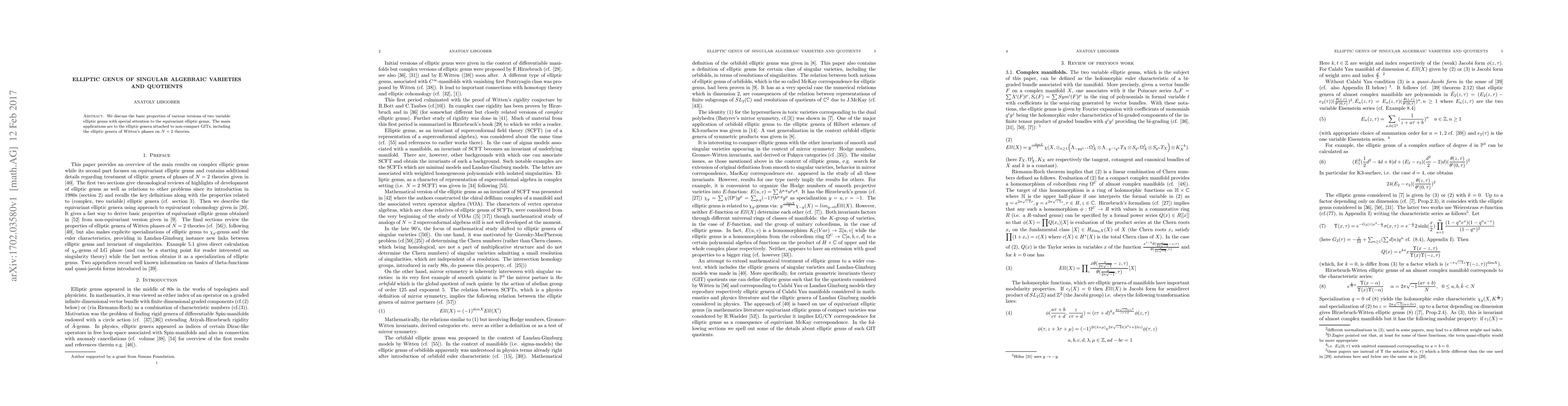 We discuss the basic properties of various versions of two variable elliptic genus with special attention to the equivariant elliptic genus. The main applications are to the elliptic genera attached to non-compact GITs, including the elliptic genera of Witten's phases on $N=2$ theories.