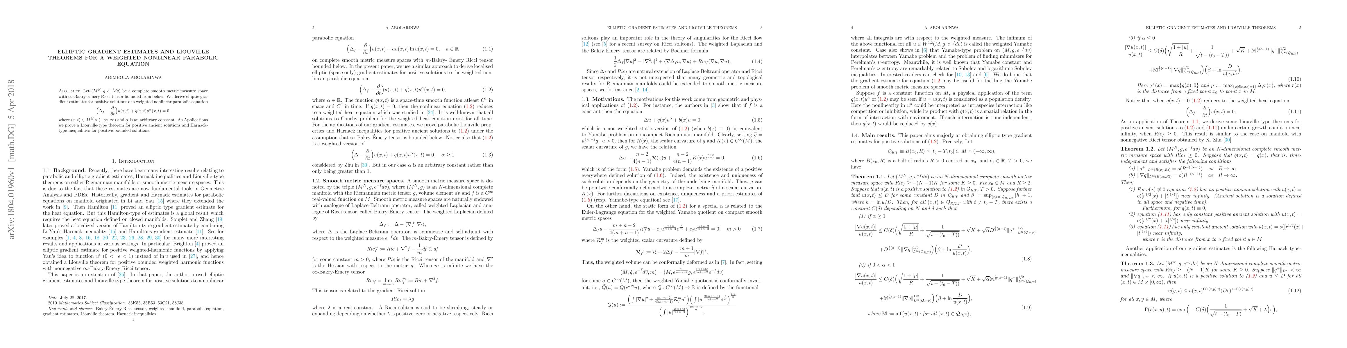 This paper derives elliptic gradient estimates for positive solutions of a weighted nonlinear parabolic equation in a complete smooth metric measure space. It also proves Liouville theorems for positive ancient solutions and Harnack-type inequalities for positive bounded solutions.