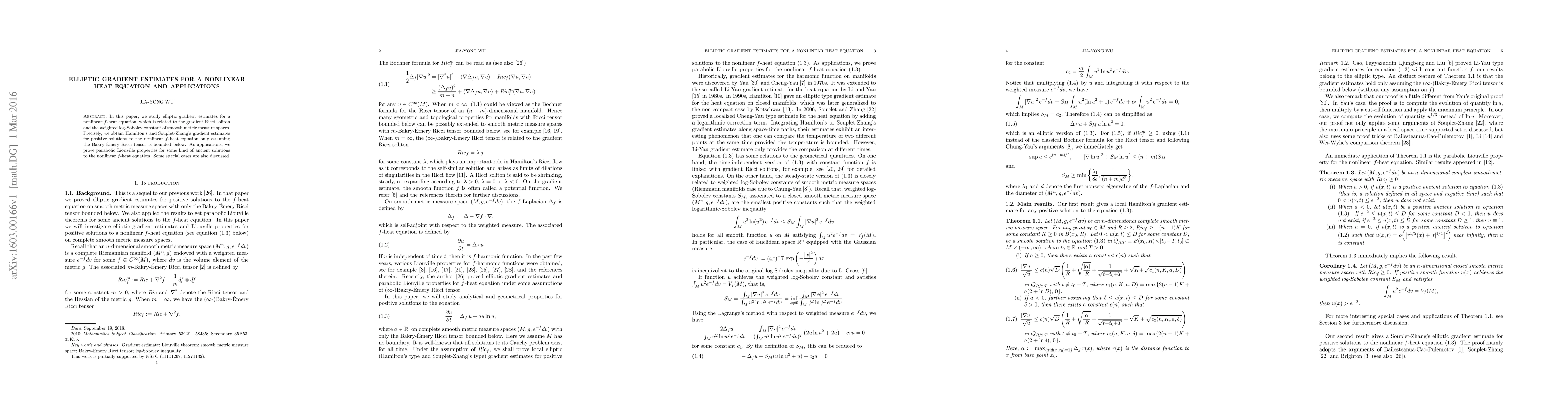 This paper derives elliptic gradient estimates for a nonlinear $f$-heat equation under the assumption of a bounded Bakry-Émery Ricci tensor, leading to Hamilton's and Souplet-Zhang's gradient estimates. Applications include proving parabolic Liouville properties for certain ancient solutions to the nonlinear $f$-heat equation.