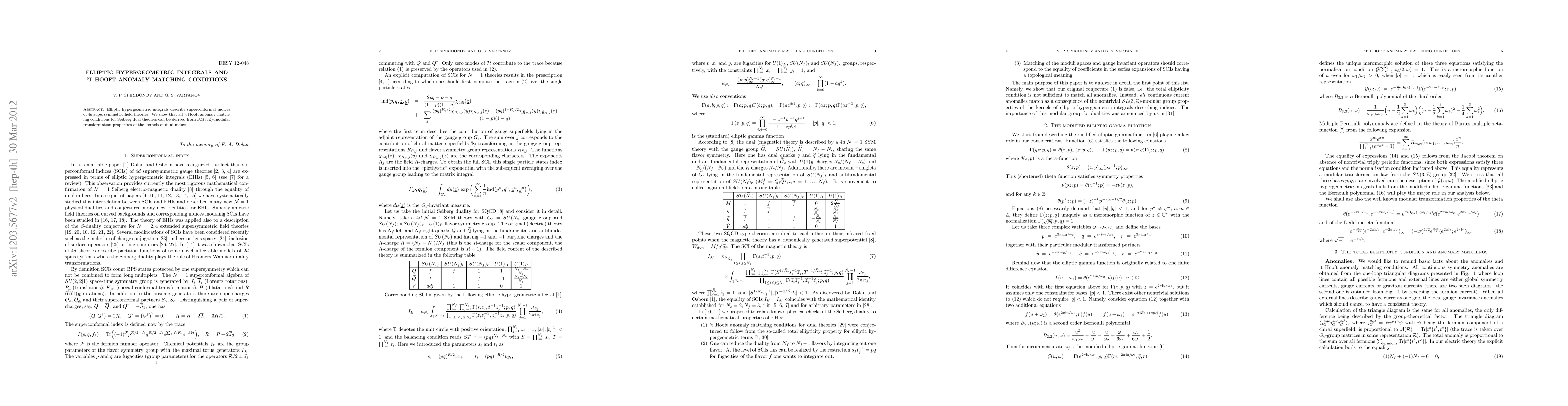 Summary: This paper demonstrates that 't Hooft anomaly matching conditions for Seiberg dual theories in 4d supersymmetric field theories can be derived from the $SL(3,\mathbb{Z})$-modular transformation properties of elliptic hypergeometric integrals associated with superconformal indices.