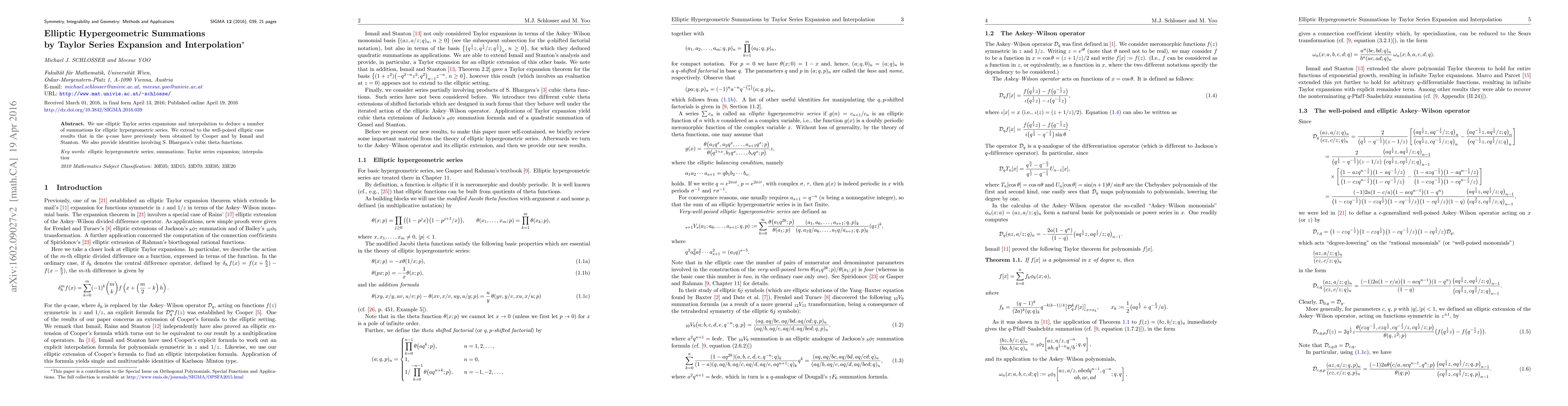 Summary: This paper employs elliptic Taylor series expansions and interpolation to derive summations for elliptic hypergeometric series, extending previous $q$-case results to the well-poised elliptic case and introducing new identities involving S. Bhargava's cubic theta functions.