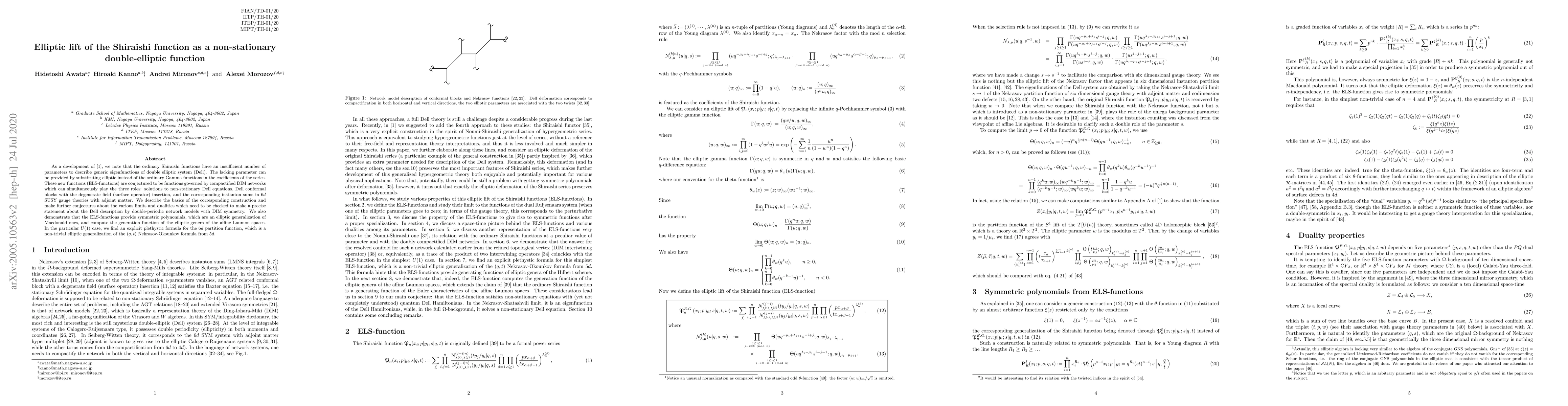 As a development of arXiv:1912.12897, we note that the ordinary Shiraishi functions have an insufficient number of parameters to describe generic eigenfunctions of double elliptic system (Dell). The lacking parameter can be provided by substituting elliptic instead of the ordinary Gamma functions in the coefficients of the series. These new functions (ELS-functions) are conjectured to be functions governed by compactified DIM networks which can simultaneously play the three roles: solutions to non-stationary Dell equations, Dell conformal blocks with the degenerate field (surface operator) insertion, and the corresponding instanton sums in $6d$ SUSY gauge theories with adjoint matter. We describe the basics of the corresponding construction and make further conjectures about the various limits and dualities which need to be checked to make a precise statement about the Dell description by double-periodic network models with DIM symmetry. We also demonstrate that the ELS-functions provide symmetric polynomials, which are an elliptic generalization of Macdonald ones, and compute the generation function of the elliptic genera of the affine Laumon spaces. In the particular $U(1)$ case, we find an explicit plethystic formula for the $6d$ partition function, which is a non-trivial elliptic generalization of the $(q,t)$ Nekrasov-Okounkov formula from $5d$.
