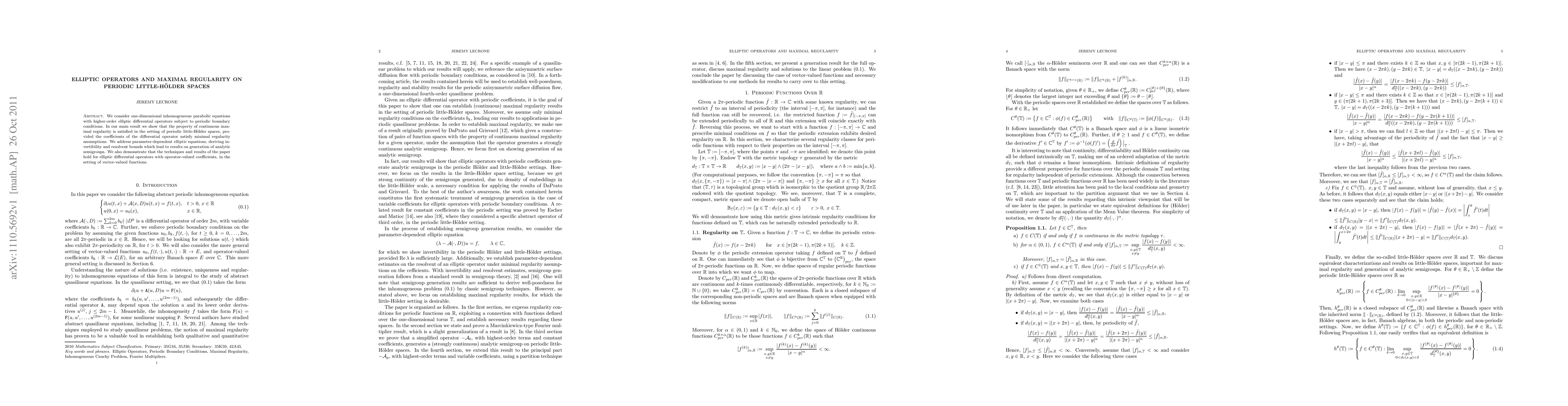 This paper investigates the continuous maximal regularity for higher-order elliptic differential operators in one-dimensional inhomogeneous parabolic equations with periodic boundary conditions, showing it holds in periodic little-Hölder spaces under minimal coefficient regularity. It also extends these results to parameter-dependent elliptic equations and operator-valued coefficients.
