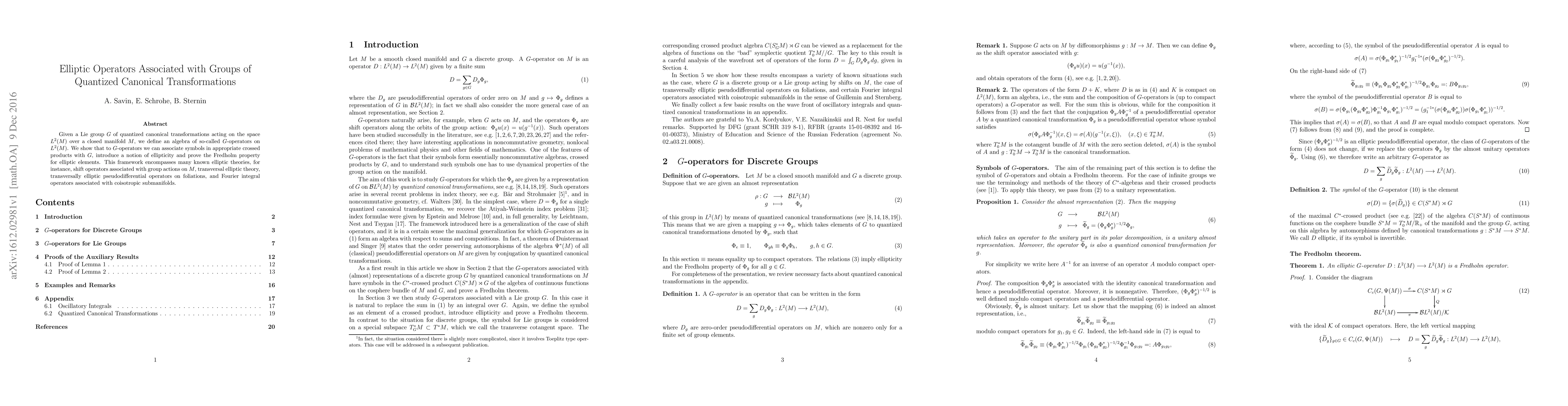 Given a Lie group $G$ of quantized canonical transformations acting on the space $L^2(M)$ over a closed manifold $M$, we define an algebra of so-called $G$-operators on $L^2(M)$. We show that to $G$-operators we can associate symbols in appropriate crossed products with $G$, introduce a notion of ellipticity and prove the Fredholm property for elliptic elements. This framework encompasses many known elliptic theories, for instance, shift operators associated with group actions on $M$, transversal elliptic theory, transversally elliptic pseudodifferential operators on foliations, and Fourier integral operators associated with coisotropic submanifolds.