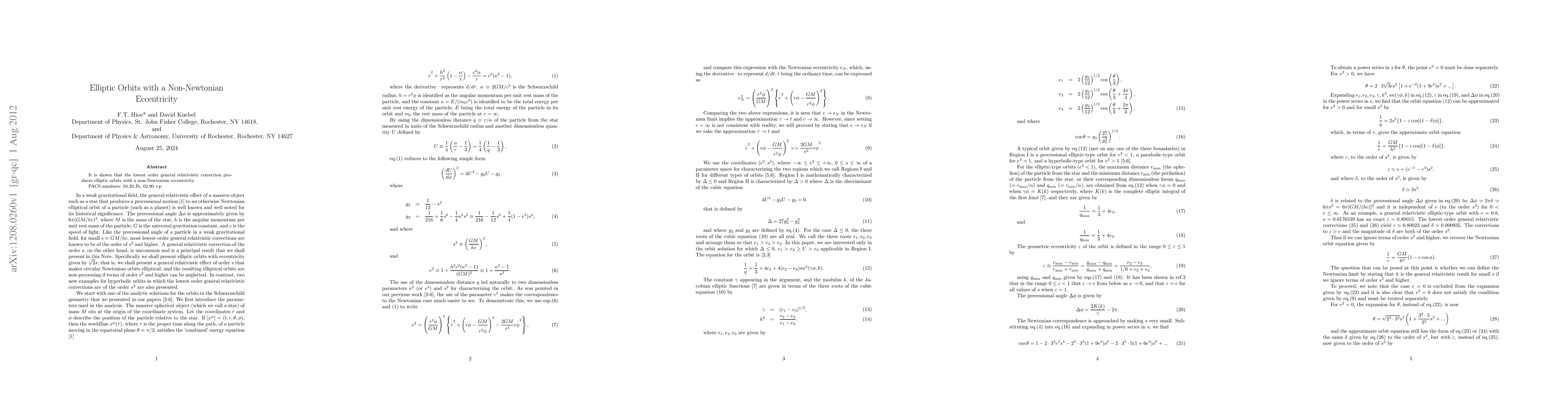 A new effect on elliptical orbits in general relativity has been found, producing non-Newtonian eccentricity, based on the lowest order general relativistic correction.