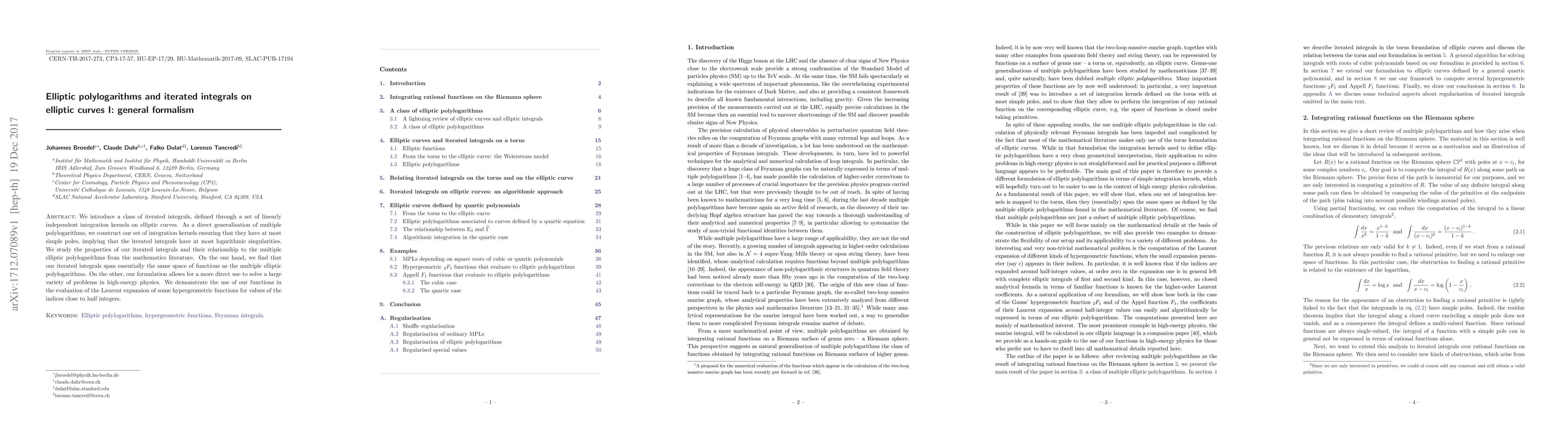 This paper introduces iterated integrals on elliptic curves, generalizing multiple polylogarithms, which exhibit logarithmic singularities and span the same function space as multiple elliptic polylogarithms. These integrals offer a versatile tool for addressing a range of problems in high-energy physics, demonstrated through their application in evaluating hypergeometric functions.