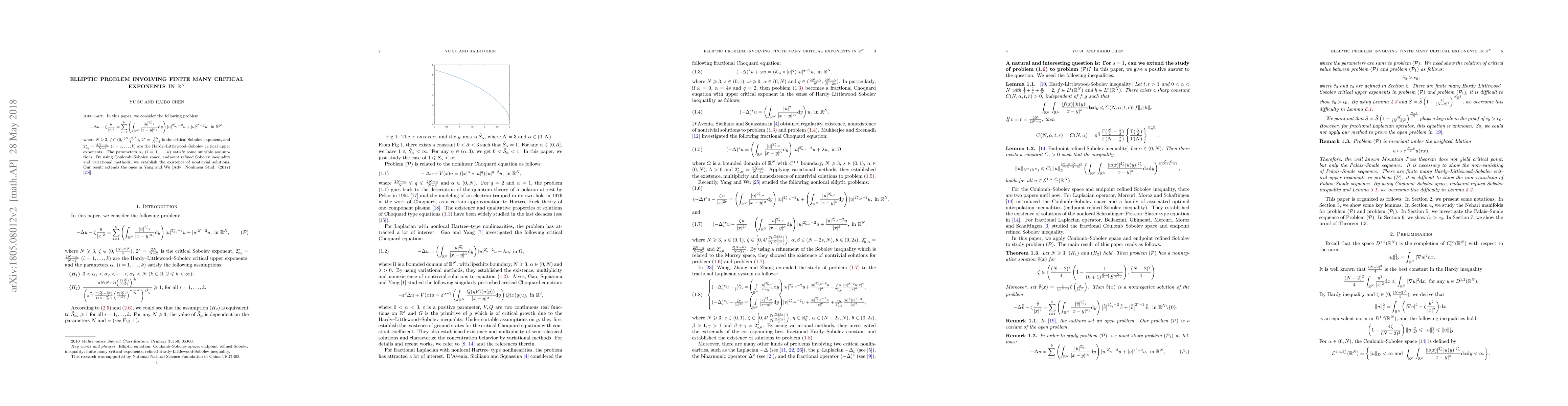 This paper investigates the existence of nontrivial solutions for an elliptic problem in $\mathbb{R}^{N}$ involving multiple critical exponents. By employing variational methods and refined Sobolev inequalities, the authors establish the existence of solutions, generalizing previous results by Yang and Wu.