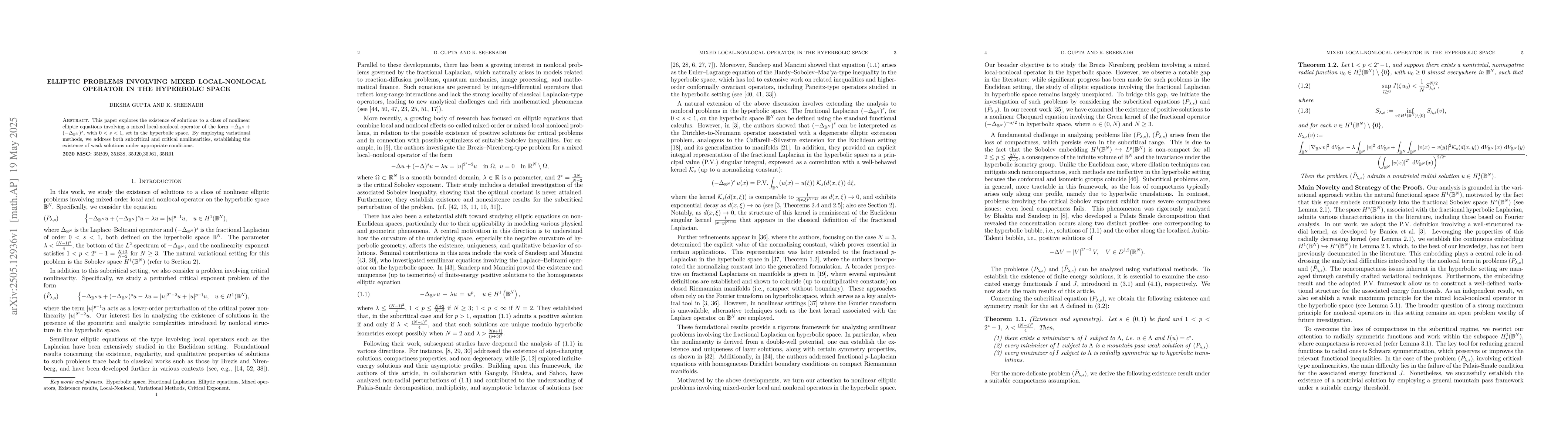 The development and application of variational methods to elliptic problems involving mixed local-nonlocal operators in hyperbolic space.