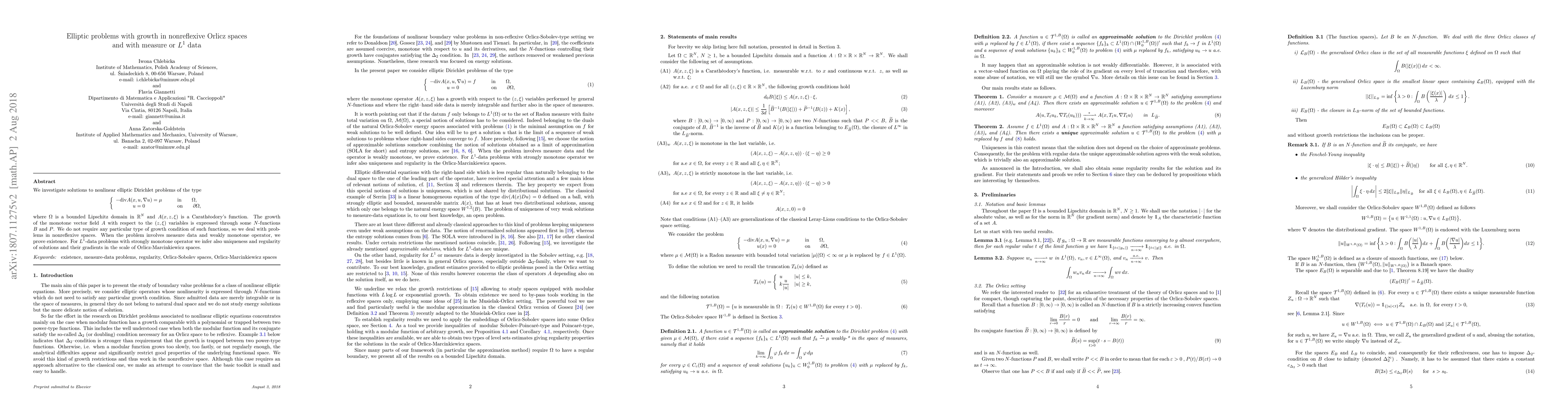 We investigate solutions to nonlinear elliptic Dirichlet problems of the type \[ \left\{\begin{array}{cl} - {\rm div} A(x,u,\nabla u)= \mu &\qquad \mathrm{ in}\qquad \Omega, u=0 &\qquad \mathrm{ on}\qquad \partial\Omega, \end{array}\right. \] where $\Omega$ is a bounded Lipschitz domain in $\mathbb{R}^n$ and $A(x,z,\xi)$ is a Carath\'eodory's function. The growth of~the~monotone vector field $A$ with respect to the $(z,\xi)$ variables is expressed through some $N$-functions $B$ and $P$. We do not require any particular type of growth condition of such functions, so we deal with problems in nonreflexive spaces. When the problem involves measure data and weakly monotone operator, we prove existence. For $L^1$-data problems with strongly monotone operator we infer also uniqueness and regularity of~solutions and their gradients in the scale of Orlicz-Marcinkiewicz spaces.