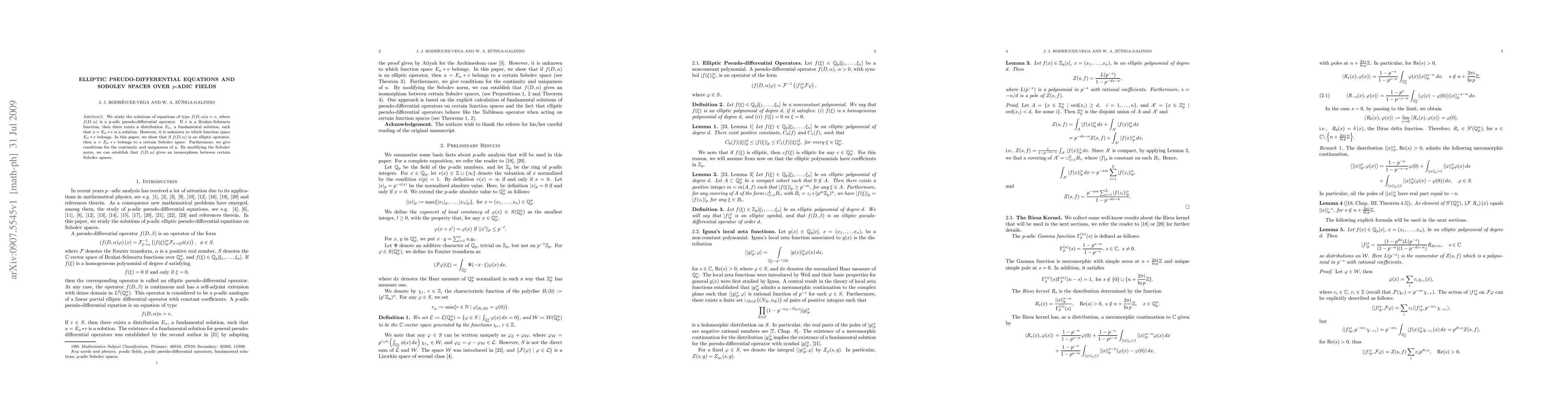 We study the solutions of equations of type $f(D,\alpha)u=v$, where $f(D,\alpha)$ is a $p$-adic pseudo-differential operator. If $v$ is a Bruhat-Schwartz function, then there exists a distribution $E_{\alpha}$, a fundamental solution, such that $u=E_{\alpha}\ast v$ is a solution. However, it is unknown to which function space $E_{\alpha}\ast v$ belongs. In this paper, we show that if $f(D,\alpha)$ is an elliptic operator, then $u=E_{\alpha}\ast v$ belongs to a certain Sobolev space. Furthermore, we give conditions for the continuity and uniqueness of $u$. By modifying the Sobolev norm, we can establish that $f(D,\alpha)$ gives an isomorphism between certain Sobolev spaces.