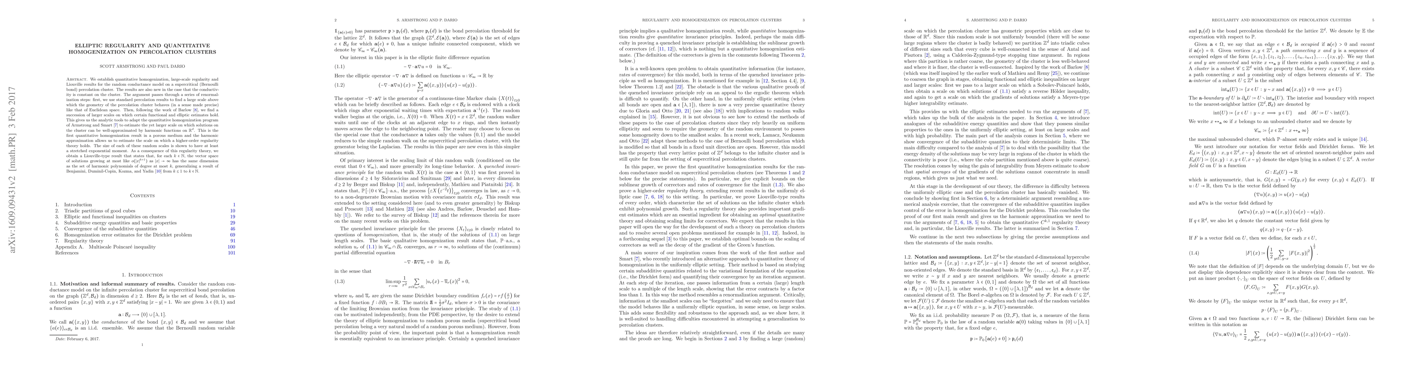 This paper establishes quantitative homogenization and large-scale regularity for the random conductance model on percolation clusters, showing that solutions can be well-approximated by harmonic functions. It also proves a Liouville-type result generalizing previous dimension estimates for growing solutions.