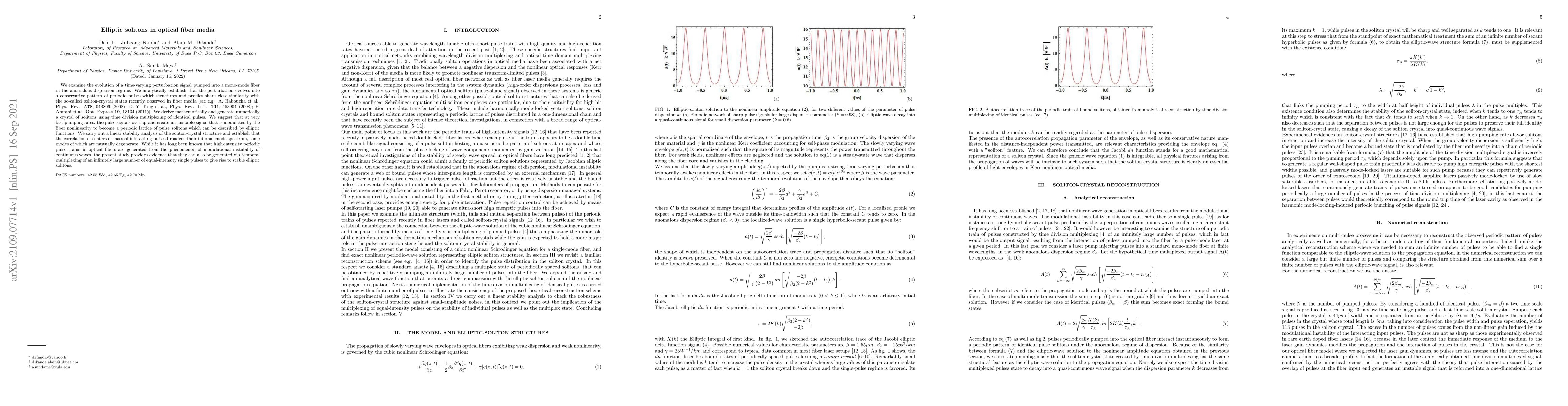 Researchers create elliptic solitons in optical fiber media through time division multiplexing of identical pulses, revealing a stable crystal of pulse solitons that can be described by elliptic functions.