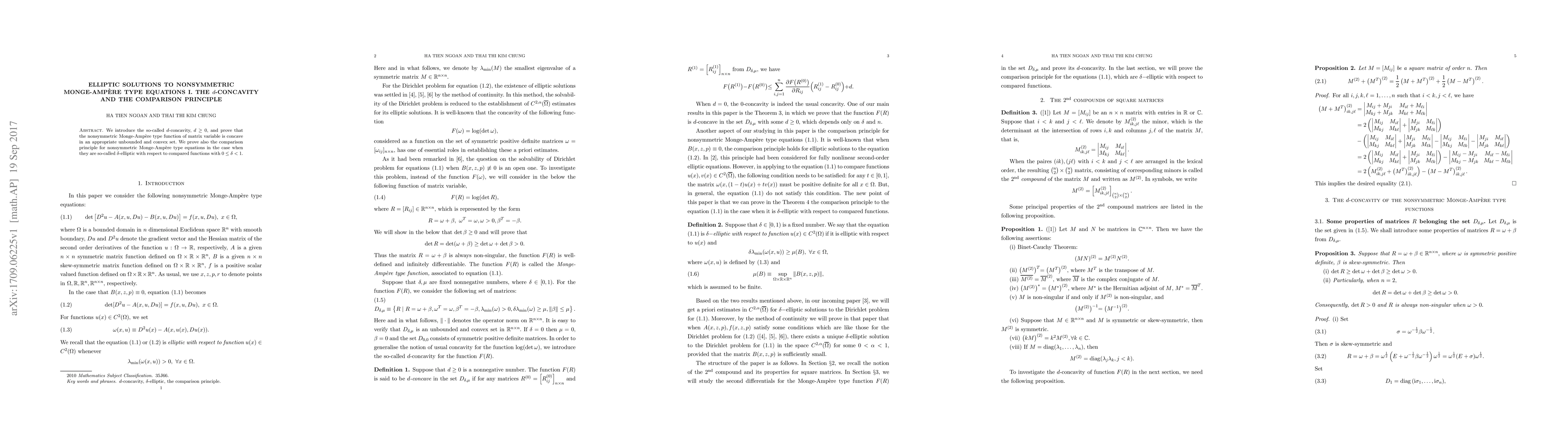 We introduce the so-called $d$-concavity, $d \geq 0,$ and prove that the nonsymmetric Monge-Amp\`{e}re type function of matrix variable is concave in an appropriate unbounded and convex set. We prove also the comparison principle for nonsymmetric Monge-Amp\`{e}re type equations in the case when they are so-called $\delta$-elliptic with respect to compared functions with $0 \leq \delta <1$.