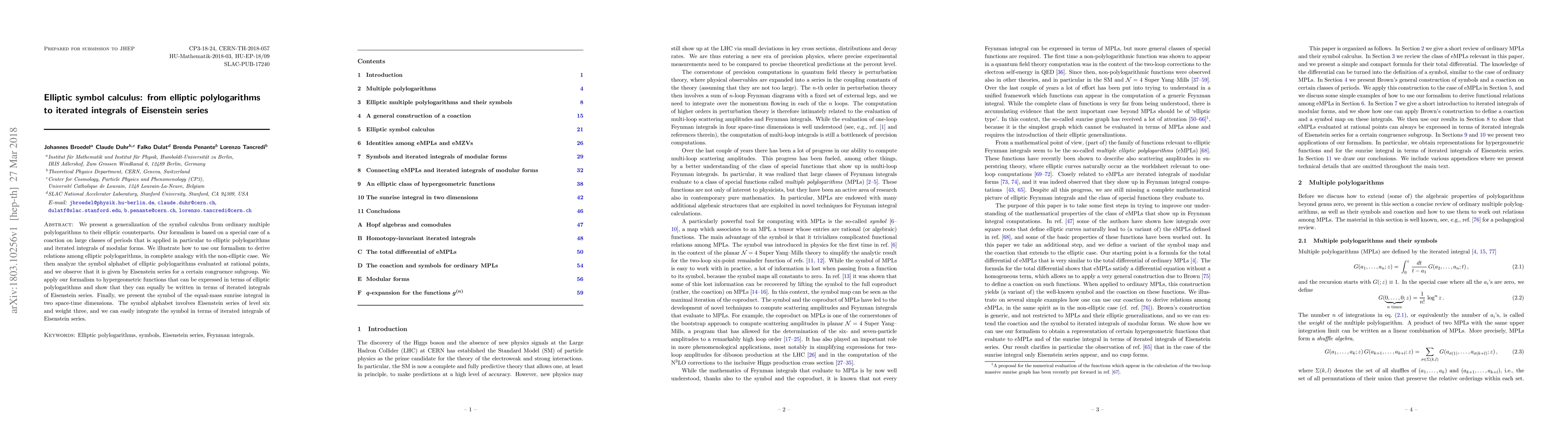 This paper generalizes the symbol calculus from ordinary multiple polylogarithms to elliptic polylogarithms and explores their relationships via iterated integrals of Eisenstein series. It demonstrates the utility of this formalism in expressing hypergeometric functions and derives the symbol of the equal-mass sunrise integral using Eisenstein series.