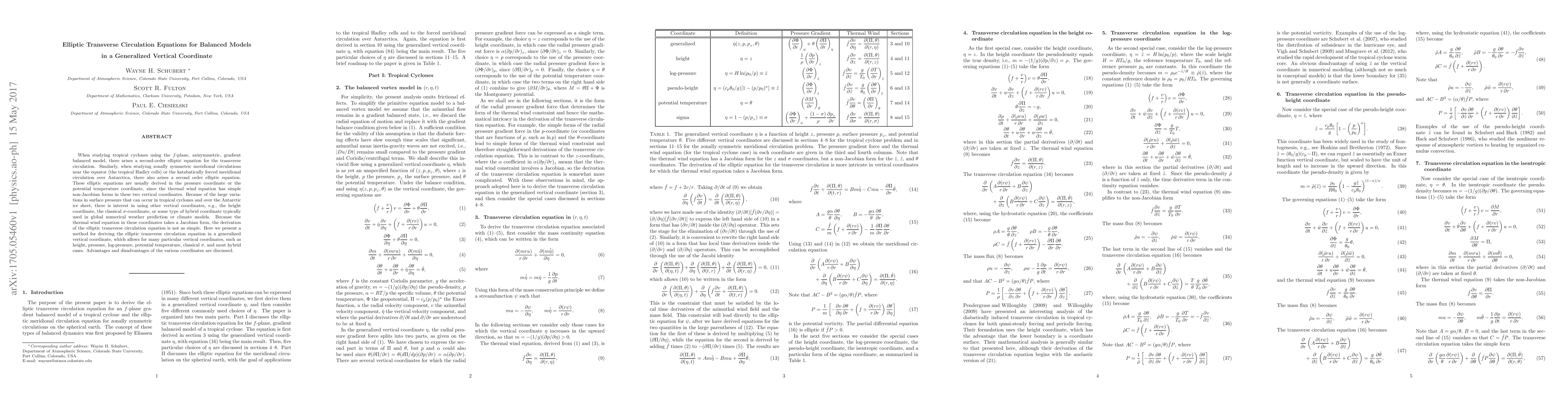 Researchers developed a method to derive elliptic transverse circulation equations for balanced models using various vertical coordinates, including height and pressure, which simplifies the calculation process.