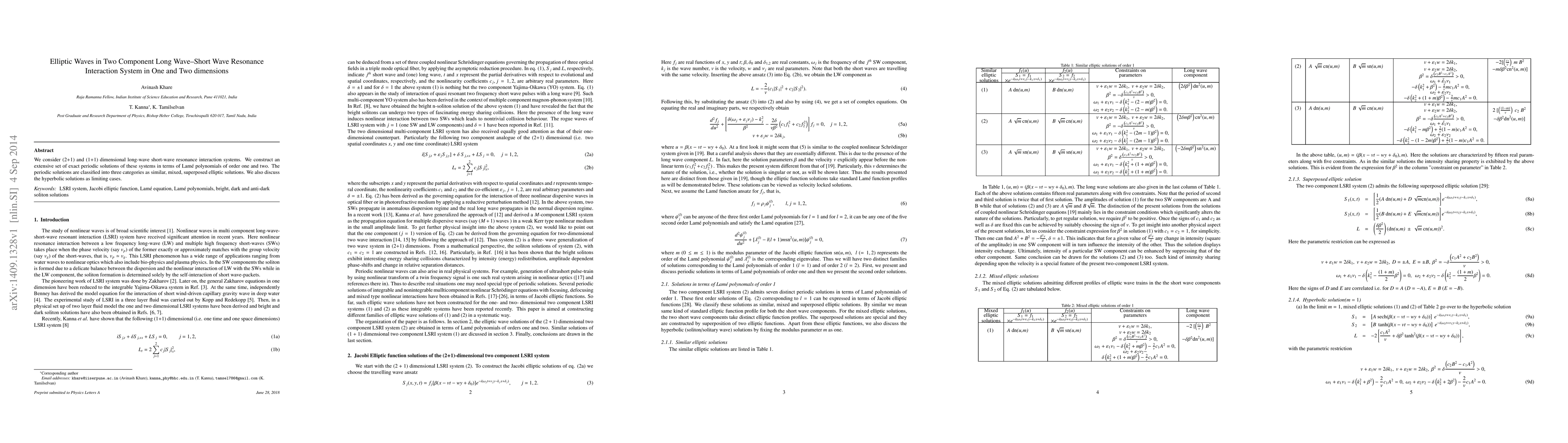 This paper explores (2+1) and (1+1) dimensional long-wave short-wave resonance interaction systems, constructing exact periodic solutions using Lam\'e polynomials. The solutions are categorized into similar, mixed, and superposed elliptic solutions, with a discussion of hyperbolic solutions as limiting cases.