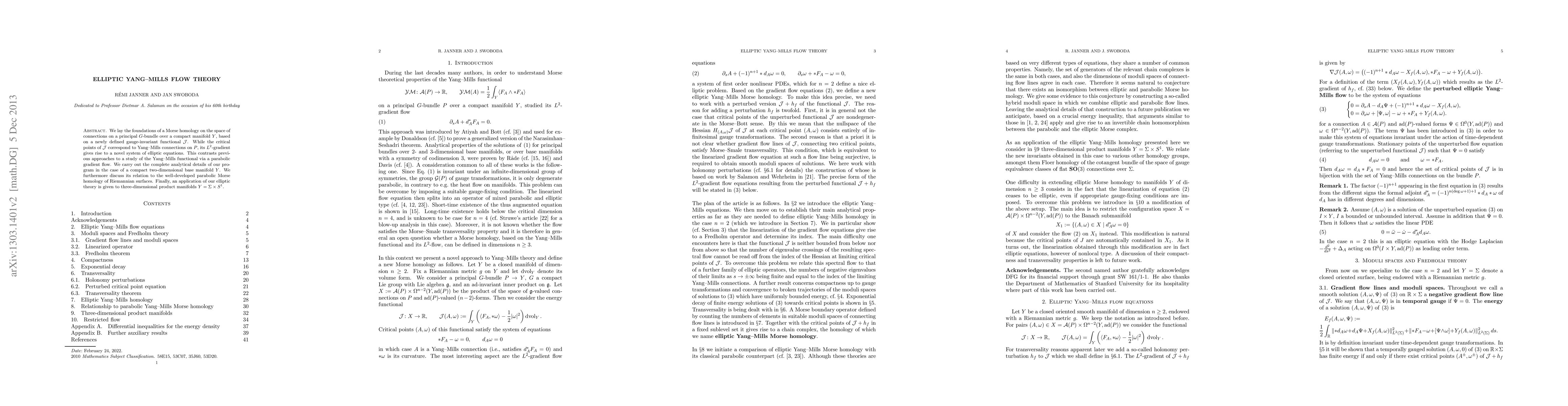 We lay the foundations of a Morse homology on the space of connections on a principal $G$-bundle over a compact manifold $Y$, based on a newly defined gauge-invariant functional $\mathcal J$. While the critical points of $\mathcal J$ correspond to Yang-Mills connections on $P$, its $L^2$-gradient gives rise to a novel system of elliptic equations. This contrasts previous approaches to a study of the Yang-Mills functional via a parabolic gradient flow. We carry out the complete analytical details of our program in the case of a compact two-dimensional base manifold $Y$. We furthermore discuss its relation to the well-developed parabolic Morse homology of Riemannian surfaces. Finally, an application of our elliptic theory is given to three-dimensional product manifolds $Y=\Sigma\times S^1$.