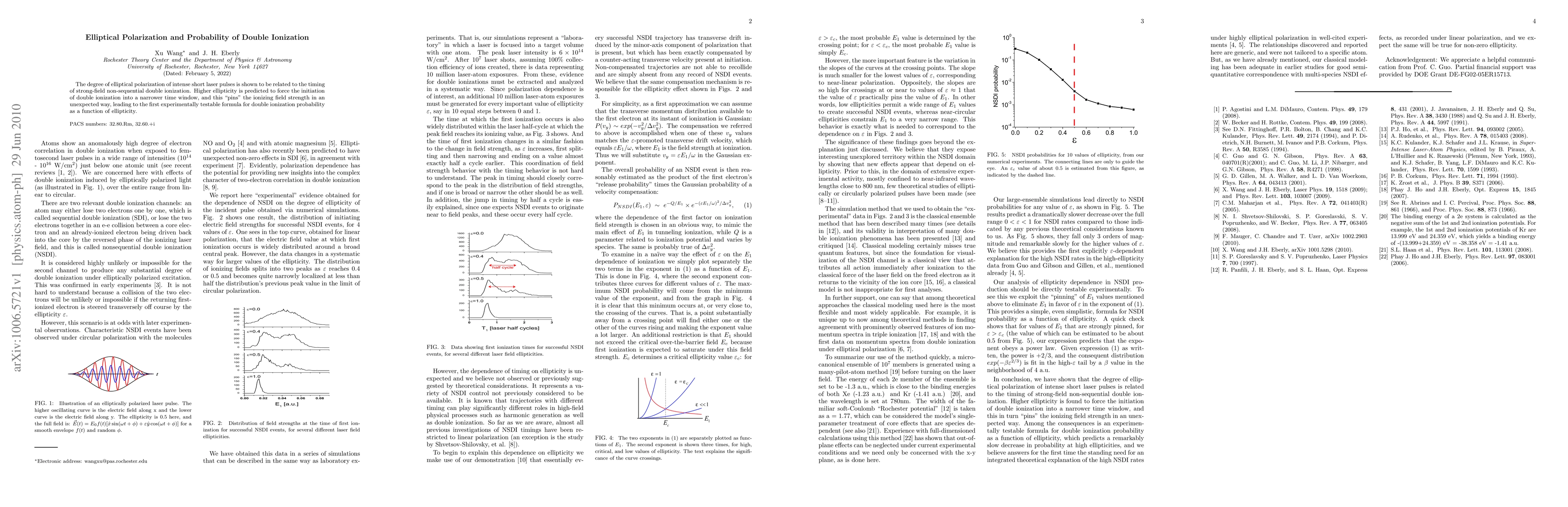 The degree of elliptical polarization of intense short laser pulses is shown to be related to the timing of strong-field non-sequential double ionization. Higher ellipticity is predicted to force the initiation of double ionization into a narrower time window, and this "pins" the ionizing field strength in an unexpected way, leading to the first experimentally testable formula for double ionization probability as a function of ellipticity.