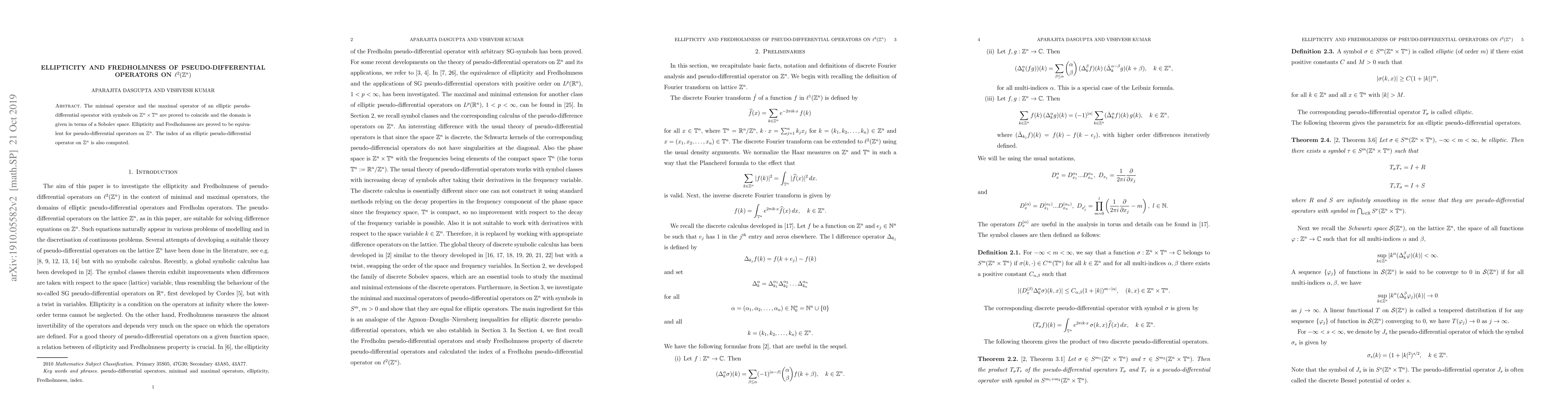 Summary: The paper proves that the minimal and maximal operators of elliptic pseudo-differential operators coincide on $\ell^2(\Zn)$, establishes their Fredholmness equivalence, and computes the operator index in terms of a Sobolev space.