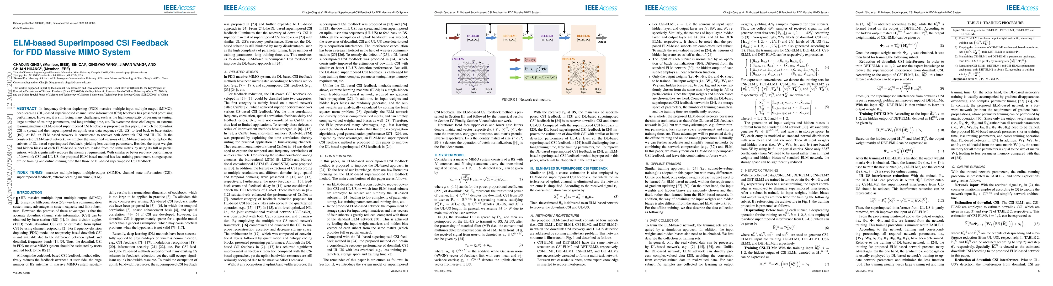 This paper proposes an extreme learning machine (ELM)-based method for superimposed channel state information (CSI) feedback in FDD massive MIMO systems to address the high complexity and training time of deep learning (DL)-based approaches. The ELM-based method uses simplified subnets and shared matrix entries to reduce training parameters and memory requirements, achieving similar or better CSI recovery performance with lower computational costs.