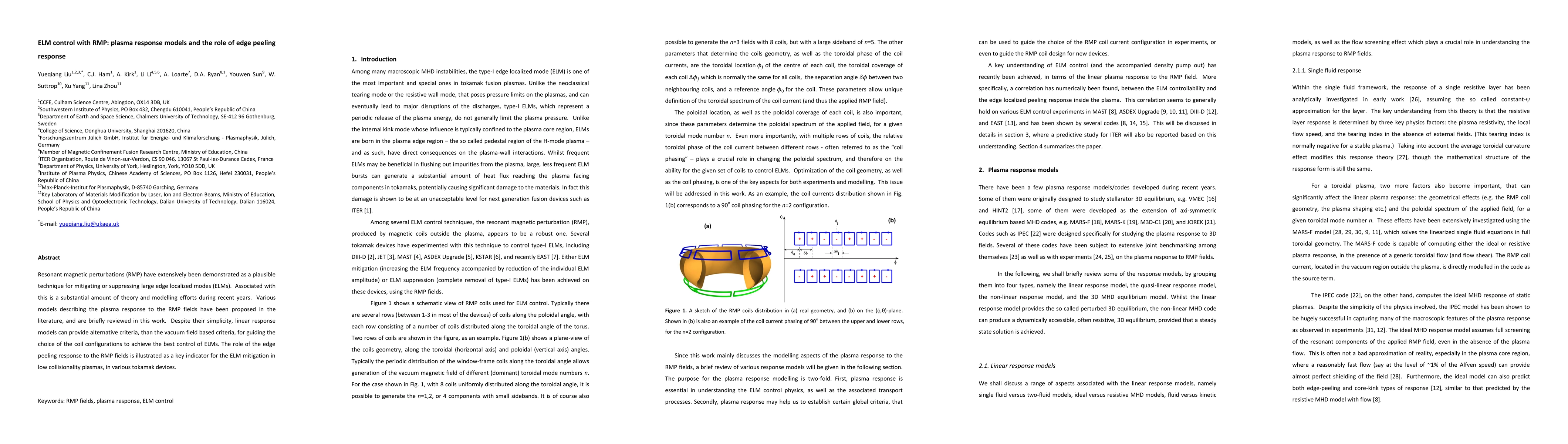 This paper reviews models for plasma response to resonant magnetic perturbations (RMP) used to control edge localized modes (ELMs), highlighting linear response models as alternatives to vacuum field criteria. It emphasizes the edge peeling response as a crucial indicator for ELM mitigation in low collisionality plasmas across different tokamak devices.