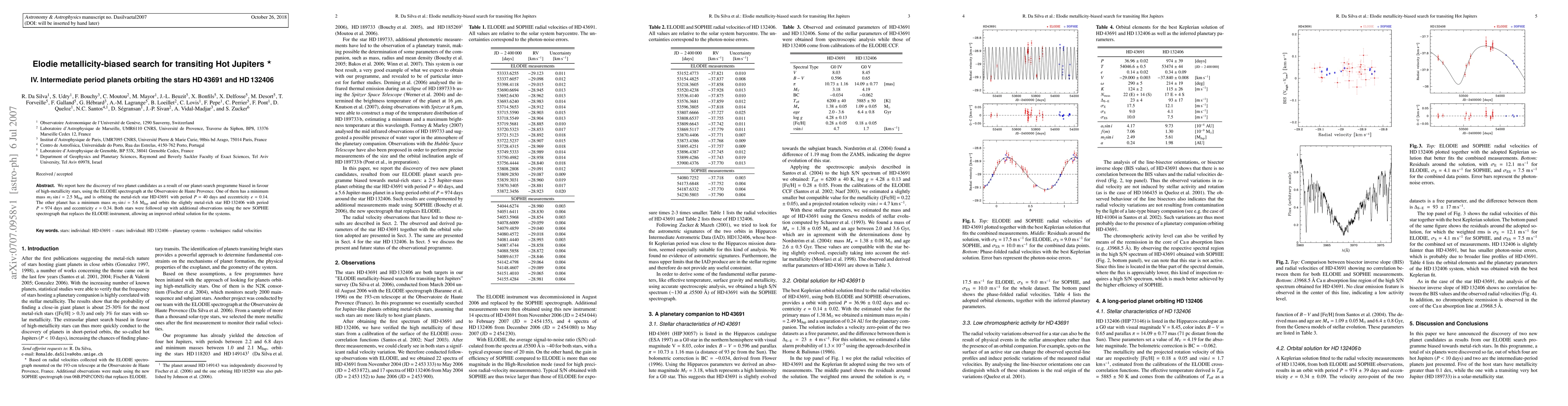 We report here the discovery of two planet candidates as a result of our planet-search programme biased in favour of high-metallicity stars, using the ELODIE spectrograph at the Observatoire de Haute Provence. One of them has a minimum mass m_2\sin{i} = 2.5 M_Jup and is orbiting the metal-rich star HD43691 with period P = 40 days and eccentricity e = 0.14. The other planet has a minimum mass m_2\sin{i} = 5.6 M_Jup and orbits the slightly metal-rich star HD132406 with period P = 974 days and eccentricity e = 0.34. Both stars were followed up with additional observations using the new SOPHIE spectrograph that replaces the ELODIE instrument, allowing an improved orbital solution for the systems.
