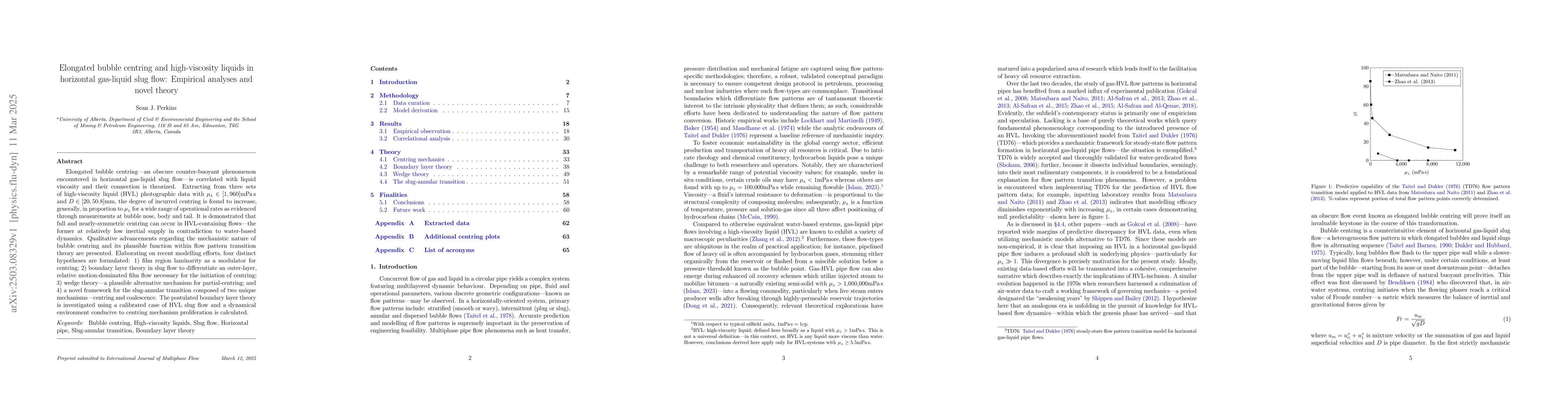 The paper presents a novel theory and empirical analyses elucidating the connection between elongated bubble centring and high-viscosity liquids in horizontal gas-liquid slug flow, proposing four hypotheses to explain the mechanistic nature of bubble centring.