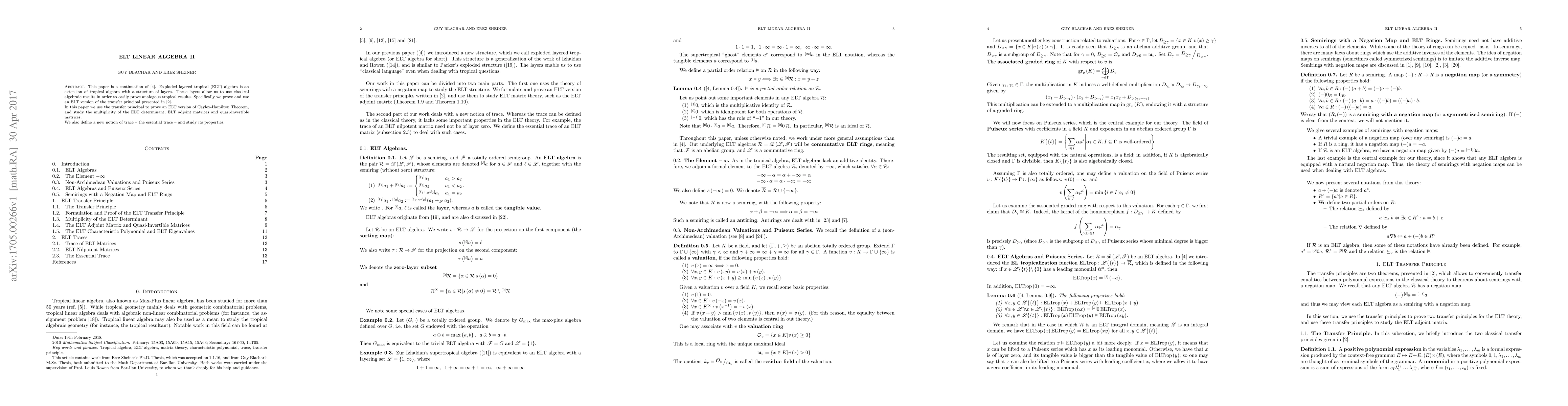 This paper is a continuation of [arXiv:1603.02204]. Exploded layered tropical (ELT) algebra is an extension of tropical algebra with a structure of layers. These layers allow us to use classical algebraic results in order to easily prove analogous tropical results. Specifically we prove and use an ELT version of the transfer principal presented in [2]. In this paper we use the transfer principle to prove an ELT version of Cayley-Hamilton Theorem, and study the multiplicity of the ELT determinant, ELT adjoint matrices and quasi-invertible matrices. We also define a new notion of trace -- the essential trace -- and study its properties.
