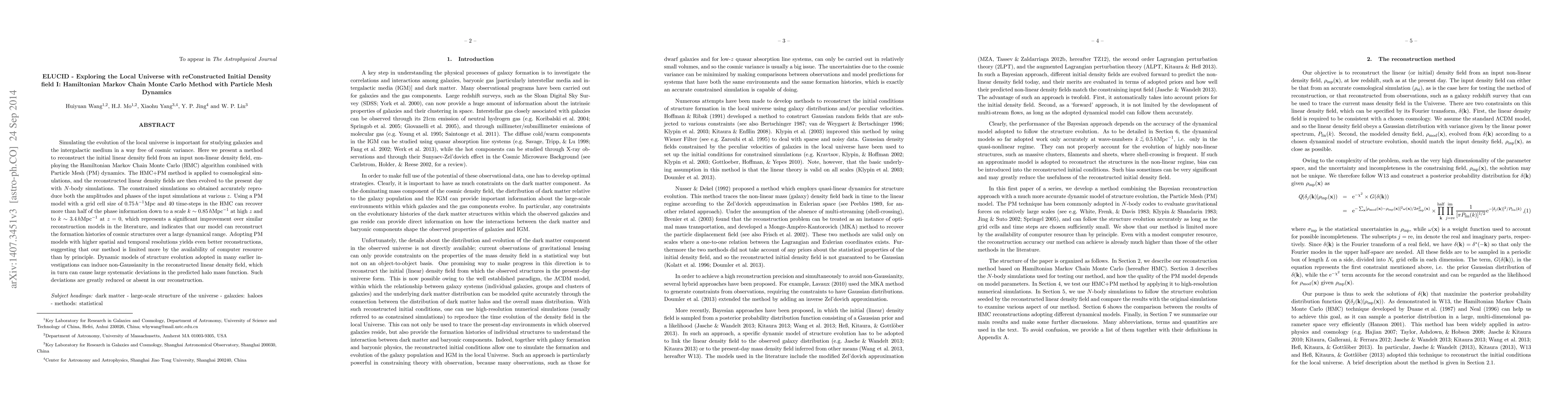 Simulating the evolution of the local universe is important for studying galaxies and the intergalactic medium in a way free of cosmic variance. Here we present a method to reconstruct the initial linear density field from an input non-linear density field, employing the Hamiltonian Markov Chain Monte Carlo (HMC) algorithm combined with Particle Mesh (PM) dynamics. The HMC+PM method is applied to cosmological simulations, and the reconstructed linear density fields are then evolved to the present day with N-body simulations. The constrained simulations so obtained accurately reproduce both the amplitudes and phases of the input simulations at various $z$. Using a PM model with a grid cell size of 0.75 Mpc/h and 40 time-steps in the HMC can recover more than half of the phase information down to a scale k~0.85 h/Mpc at high z and to k~3.4 h/Mpc at z=0, which represents a significant improvement over similar reconstruction models in the literature, and indicates that our model can reconstruct the formation histories of cosmic structures over a large dynamical range. Adopting PM models with higher spatial and temporal resolutions yields even better reconstructions, suggesting that our method is limited more by the availability of computer resource than by principle. Dynamic models of structure evolution adopted in many earlier investigations can induce non-Gaussianity in the reconstructed linear density field, which in turn can cause large systematic deviations in the predicted halo mass function. Such deviations are greatly reduced or absent in our reconstruction.