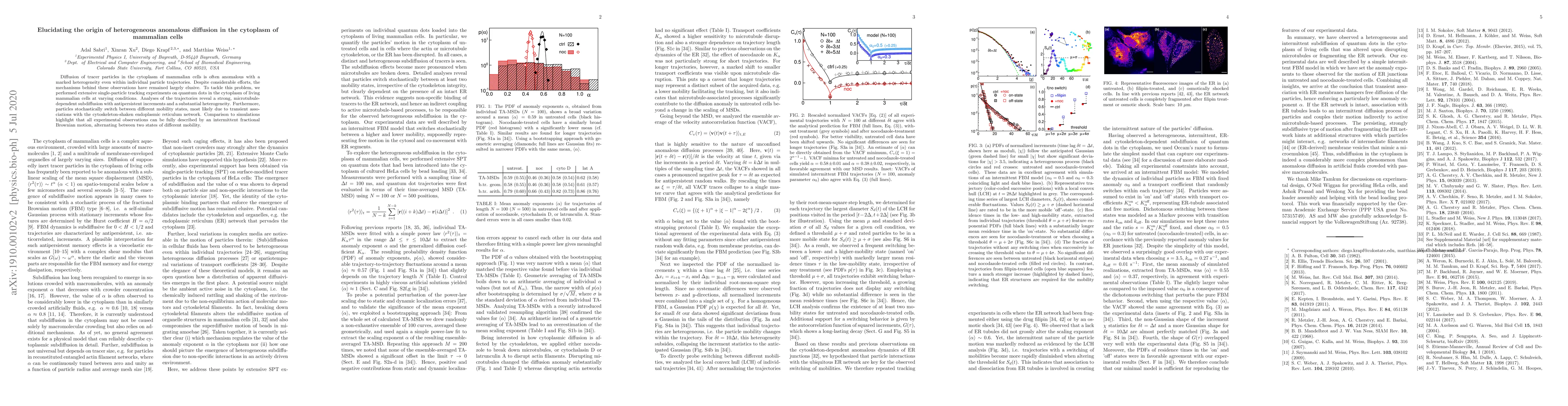 This study elucidates the heterogeneous anomalous diffusion in mammalian cell cytoplasm through single-particle tracking of quantum dots, revealing microtubule-dependent subdiffusion and stochastic transitions between mobility states due to interactions with the cytoskeleton-associated ER network. The findings are best described by an intermittent fractional Brownian motion model.