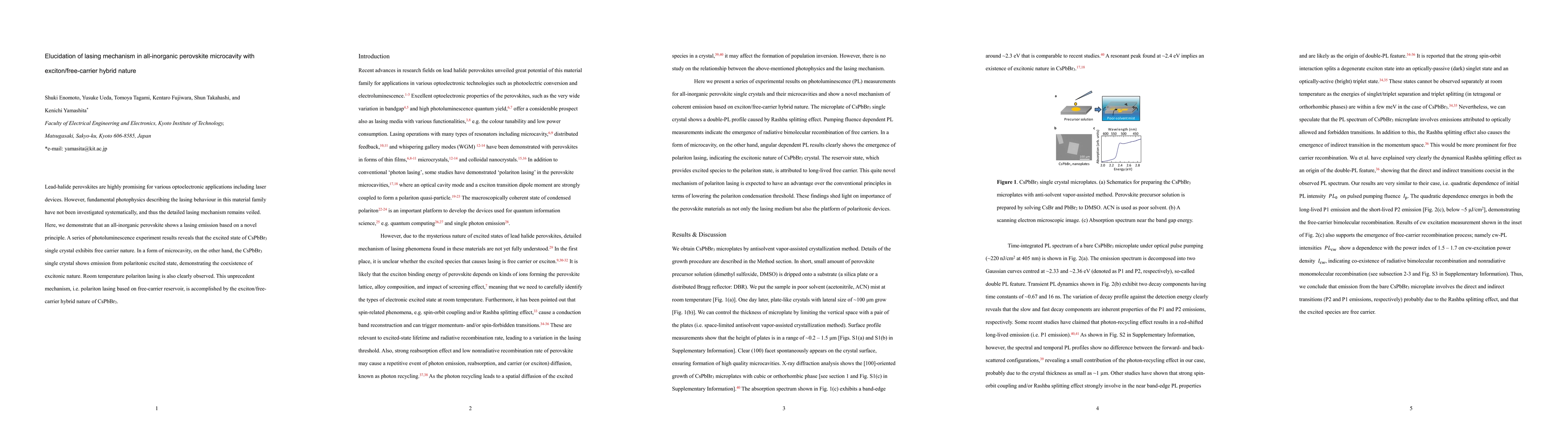 This paper elucidates the lasing mechanism in an all-inorganic perovskite microcavity, revealing that CsPbBr3 exhibits a hybrid exciton/free-carrier nature, enabling polariton lasing at room temperature. The study demonstrates a novel lasing principle based on the coexistence of excitonic and free-carrier states.