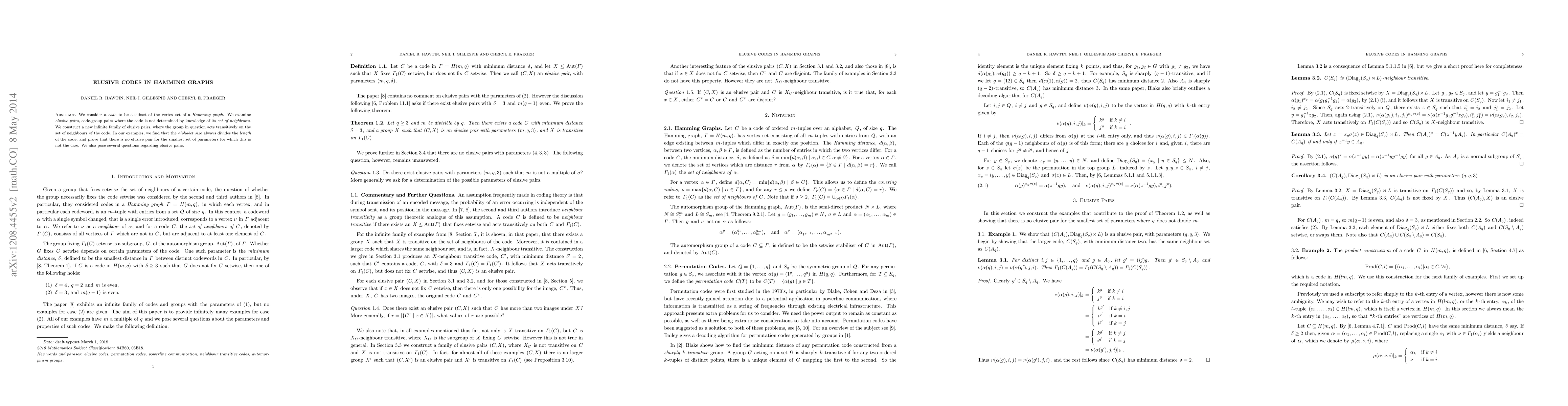The work introduces a new family of elusive pairs and proves a non-existence theorem, providing significant theoretical contributions to the field of coding theory in Hamming graphs.