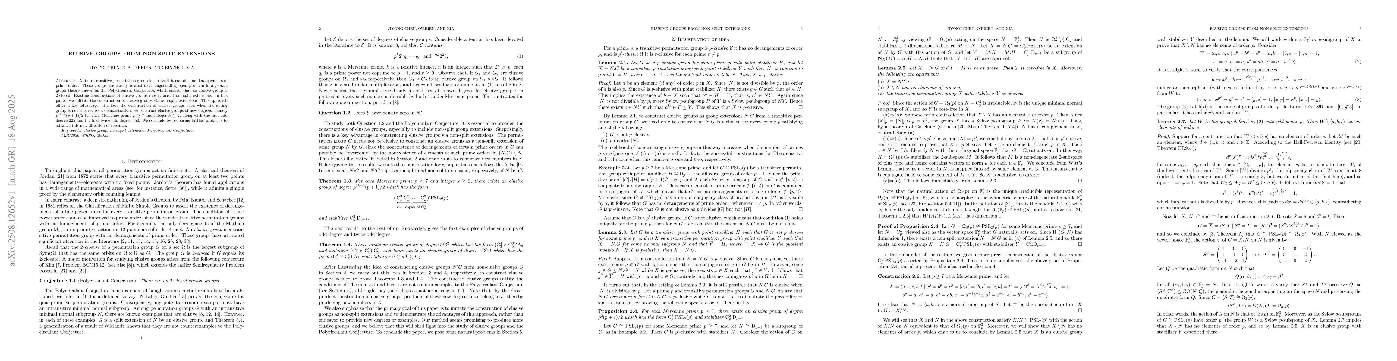The paper initiates the construction of elusive groups via non-split extensions, offering a method to construct such groups even when the acting group is not elusive.
