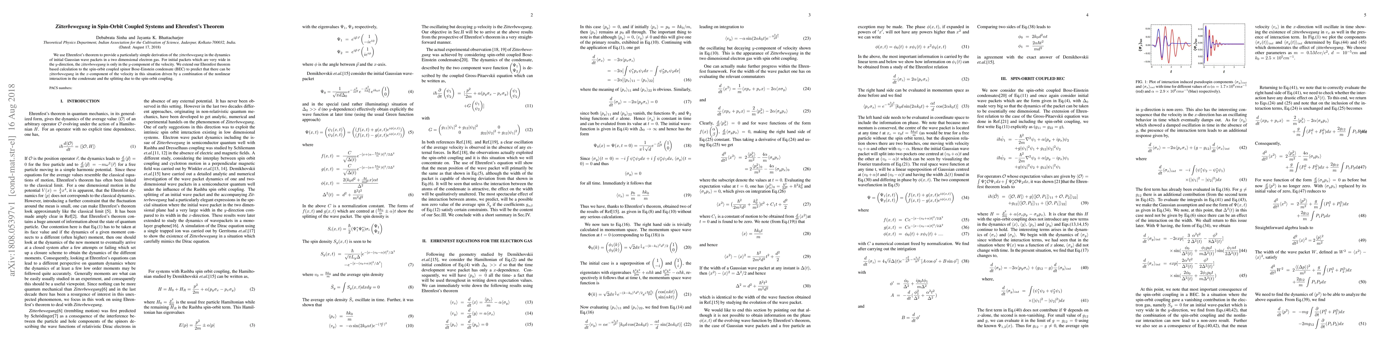 This paper derives the phenomenon of zitterbewegung in spin-orbit coupled systems using Ehrenfest's theorem, demonstrating its occurrence in both two-dimensional electron gases and spinor Bose-Einstein condensates, driven by spin-orbit coupling and nonlinear interactions.