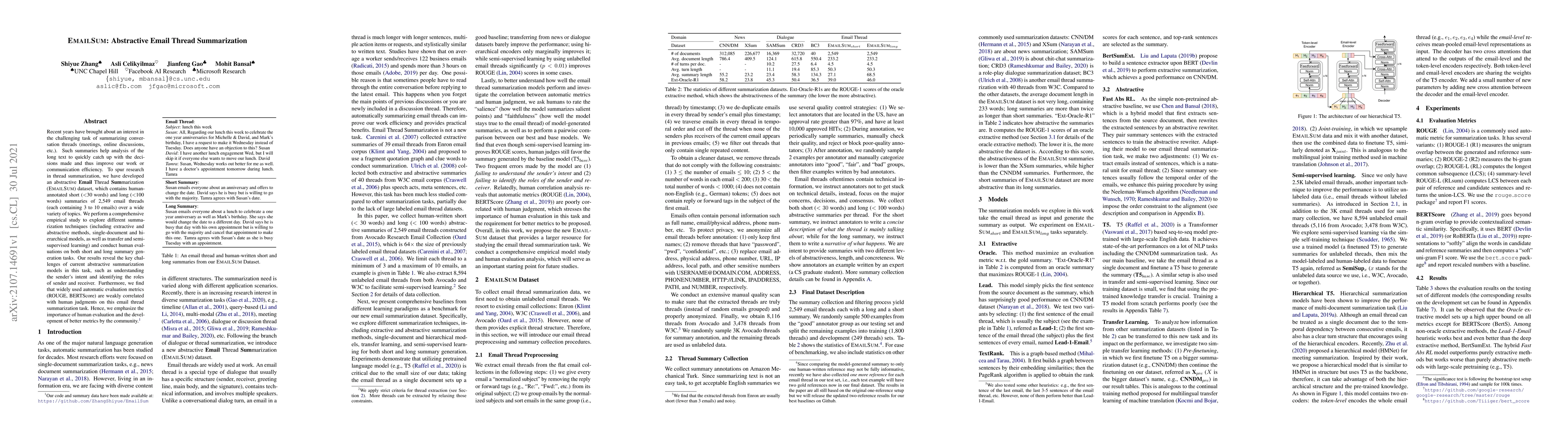 Researchers developed an EmailSum dataset to aid in summarizing email threads, finding that automatic evaluation metrics are weakly correlated with human judgments, highlighting the need for better metrics and human evaluations.