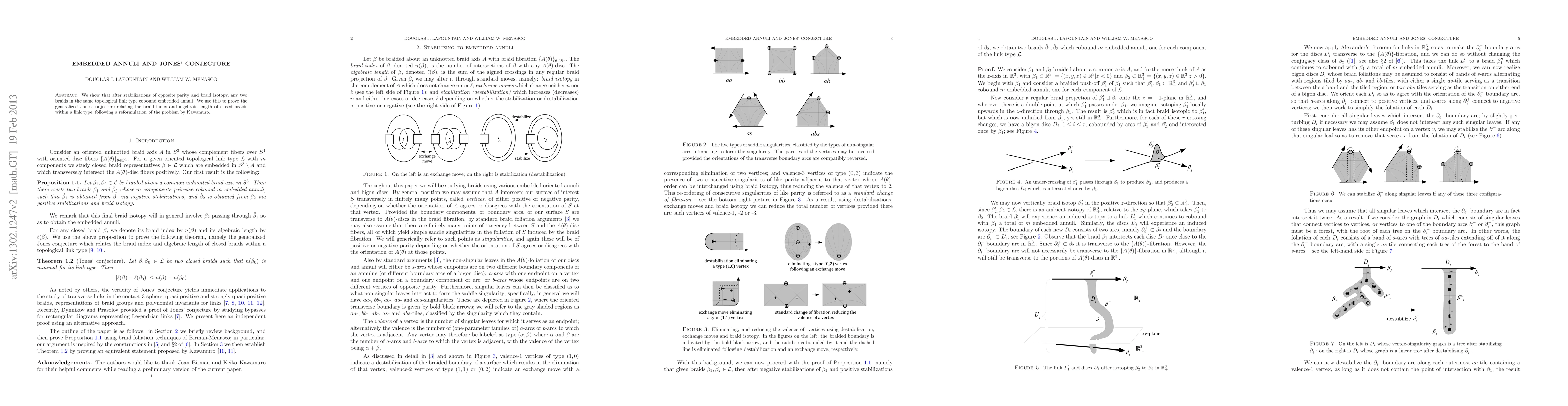 The paper demonstrates that after stabilizations and braid isotopy, any two braids in the same link type cobound embedded annuli, and uses this to prove the generalized Jones conjecture linking the braid index and algebraic length of closed braids. This result follows a reformulation of the conjecture by Kawamuro.