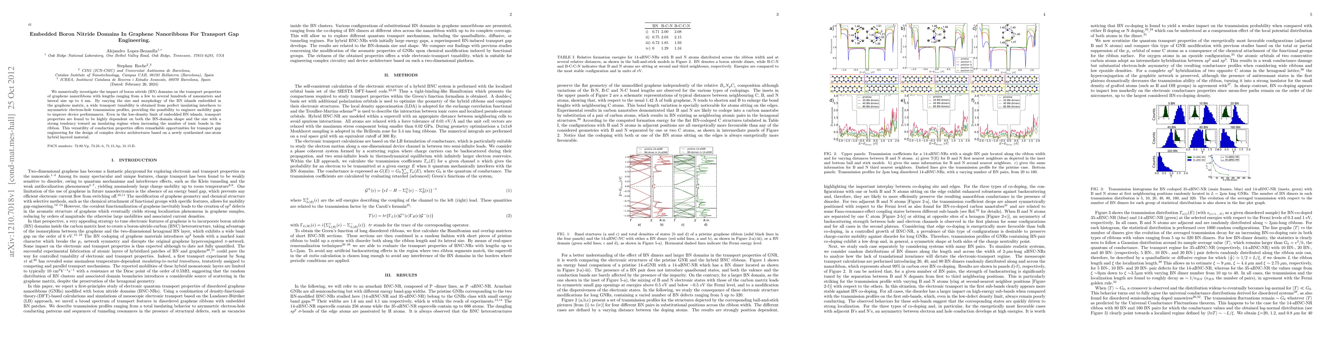 Researchers found that embedded boron nitride domains in graphene nanoribbons can create transport gaps for improved device performance. By varying domain size and morphology, they achieved tunability from insulating interfaces to asymmetric electron-hole transmission profiles.