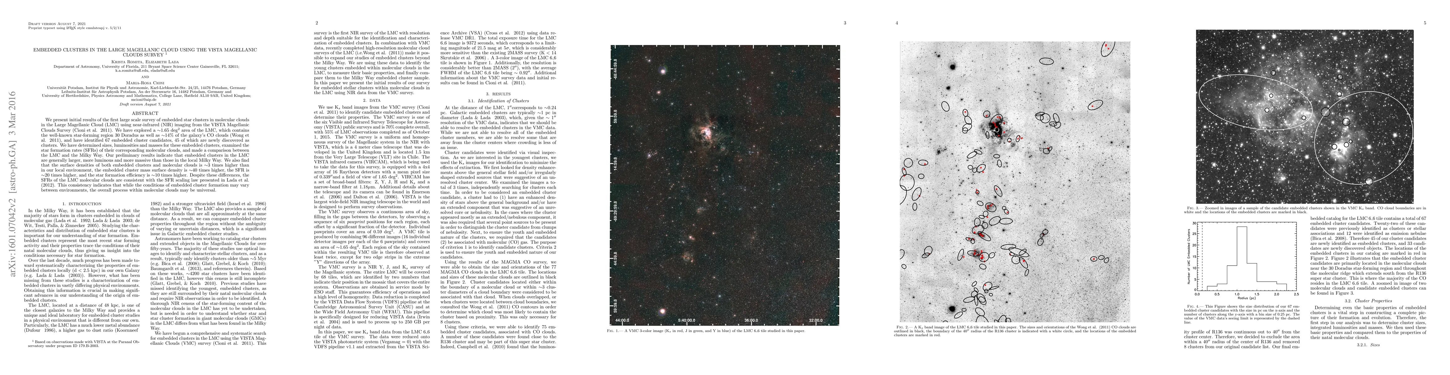 This study identifies 67 embedded star cluster candidates in the Large Magellanic Cloud (LMC) using VISTA NIR imaging, revealing 45 new clusters. The research finds that LMC clusters are larger, more luminous, and more massive compared to those in the Milky Way, with significantly higher star formation rates and efficiencies.