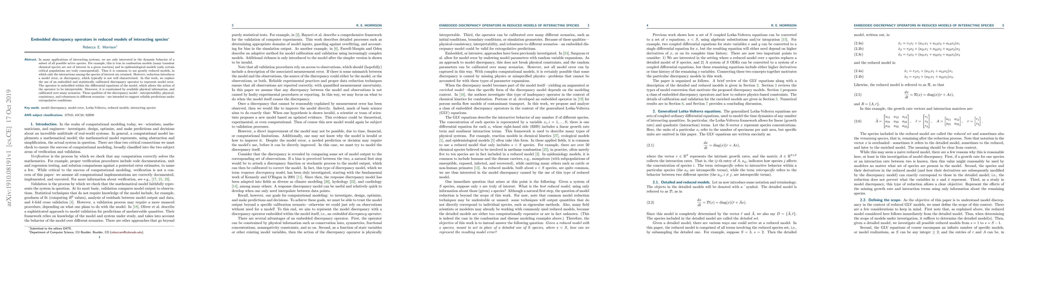 Researchers developed an embedded discrepancy operator to represent model error in reduced models of interacting species, aiming for interpretable, physically-consistent, and robust predictions.