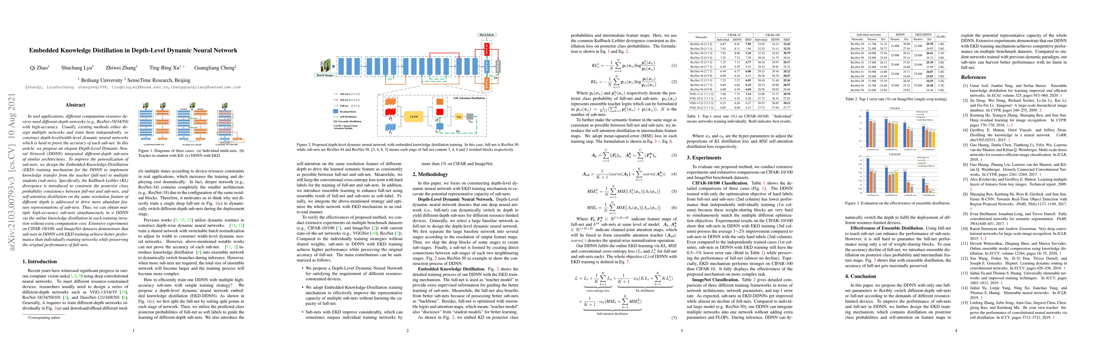 This paper proposes a Depth-Level Dynamic Neural Network (DDNN) that integrates multiple different-depth sub-networks using an Embedded-Knowledge-Distillation (EKD) training mechanism. The EKD method enhances sub-networks through knowledge transfer from a teacher network, achieving better performance compared to individually trained networks while maintaining the original performance of the full network.