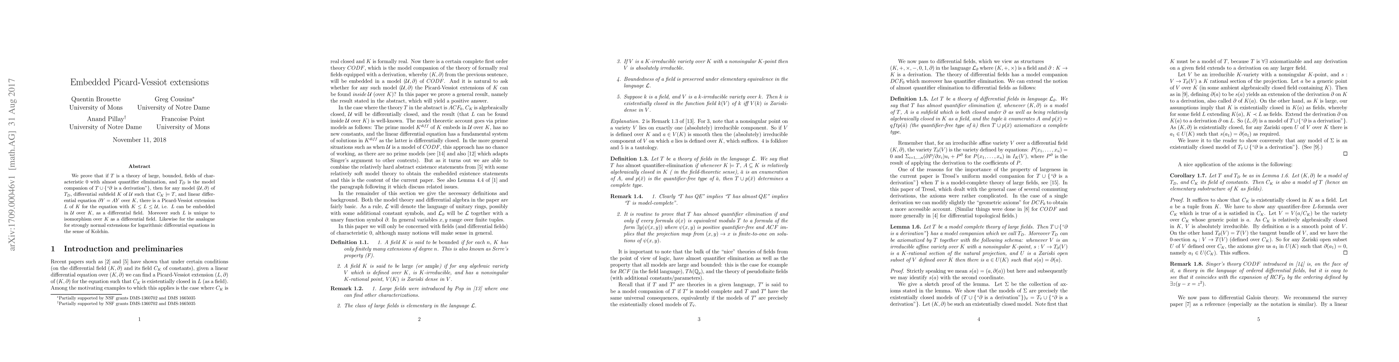 Researchers prove that under certain conditions, differential equations can be solved using Picard-Vessiot extensions, which provide a way to extend the field of constants of a model to solve linear differential equations over it.