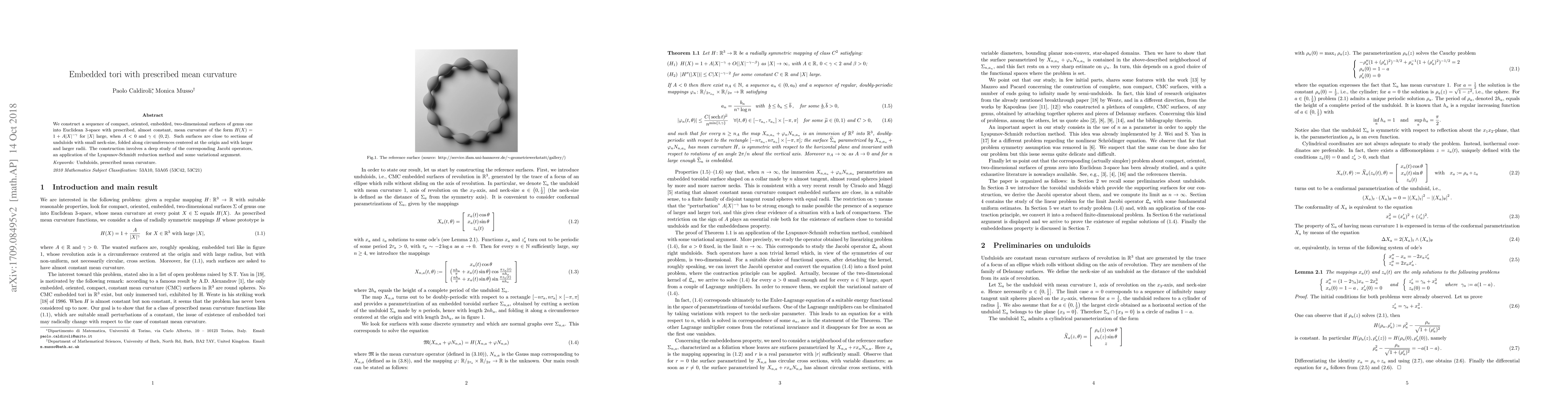 Researchers create two-dimensional surfaces with prescribed mean curvature, similar to sections of unduloids, using a combination of mathematical tools like Jacobi operators and the Lyapunov-Schmidt reduction method.