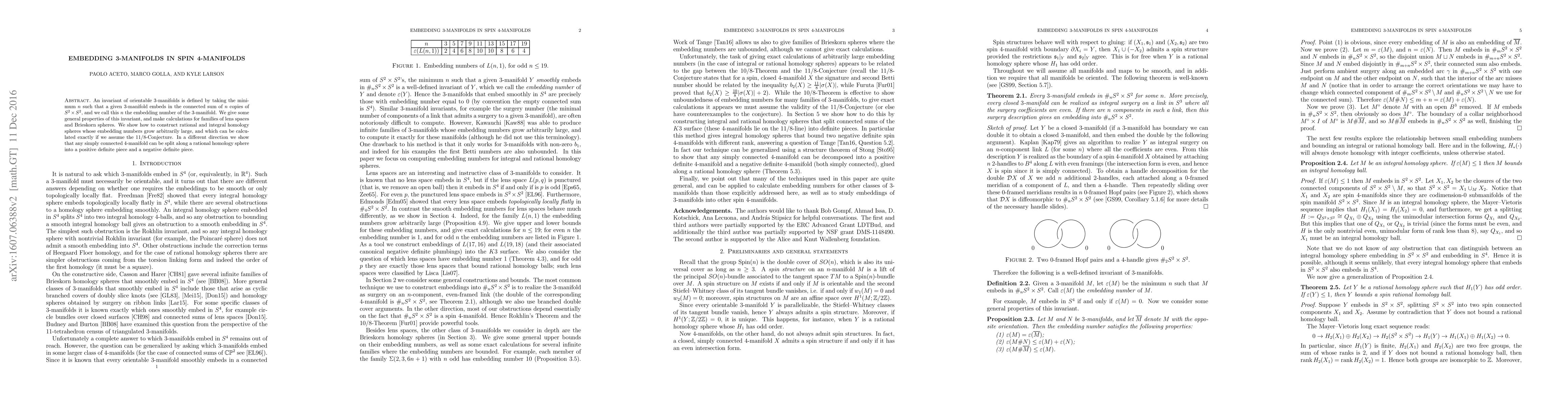 This paper defines an embedding number for orientable 3-manifolds as the minimum number of $S^2 \times S^2$ copies needed for an embedding in their connected sum. It explores properties and calculations for lens spaces, Brieskorn spheres, and constructs large embedding number homology spheres under the 11/8-Conjecture, while also discussing the splitting of simply connected 4-manifolds along rational homology spheres.