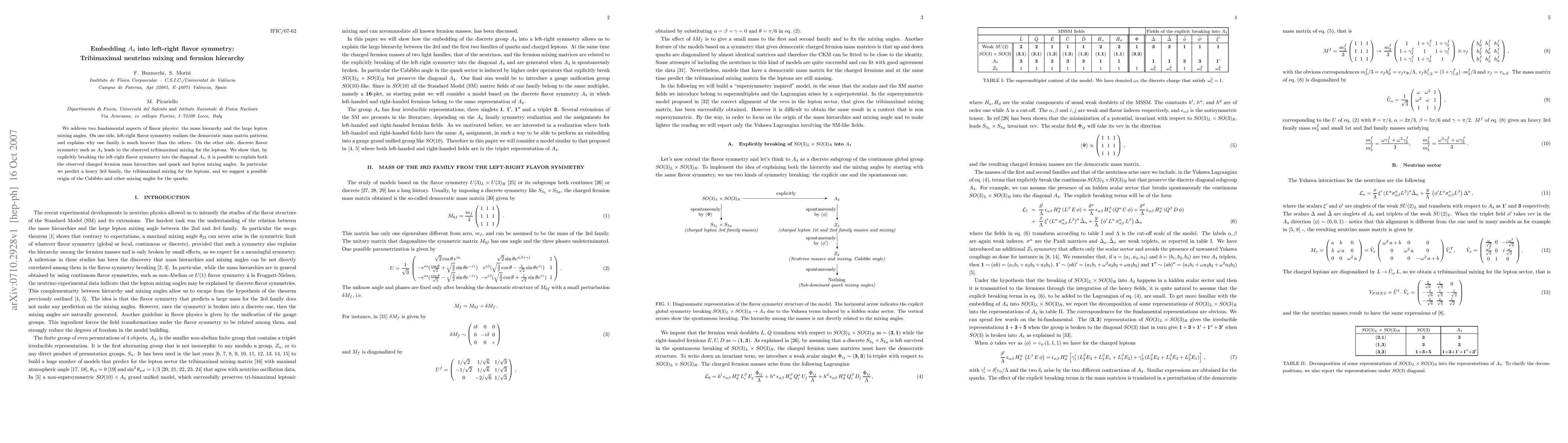 The paper presents a novel approach to embedding A4 into SO(3)L×SO(3)R, demonstrating how this structure can explain both fermion mass hierarchies and lepton mixing angles.