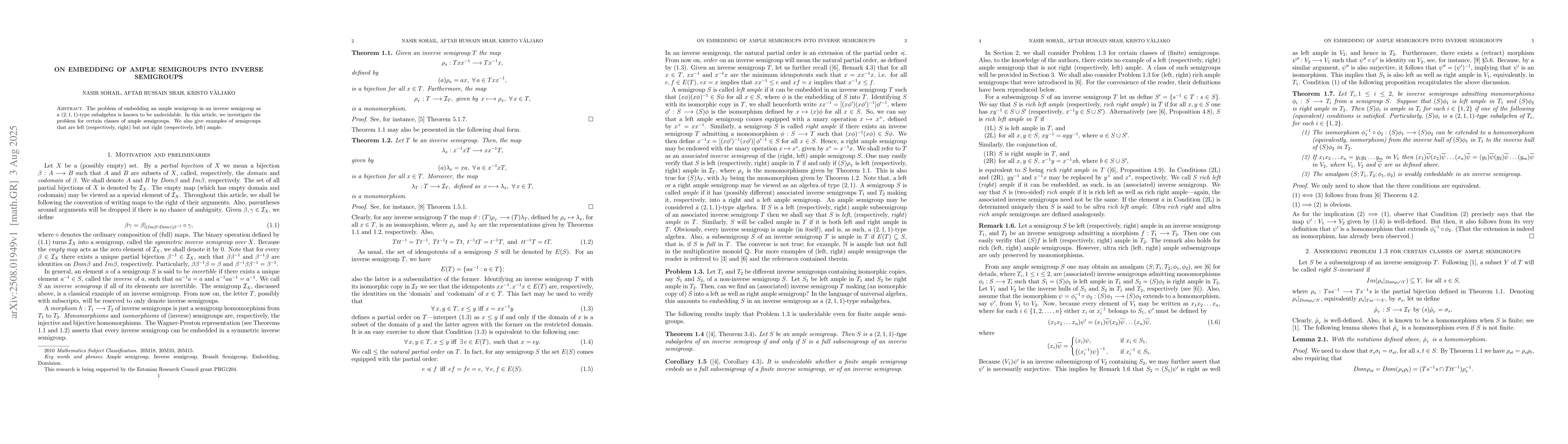 The problem of embedding an ample semigroup in an inverse semigroup as a (2, 1, 1)-type subalgebra is known to be undecidable. In this article, we investigate the problem for certain classes of ample semigroups. We also give examples of semigroups that are left (respectively, right) but not right (respectively, left) ample.