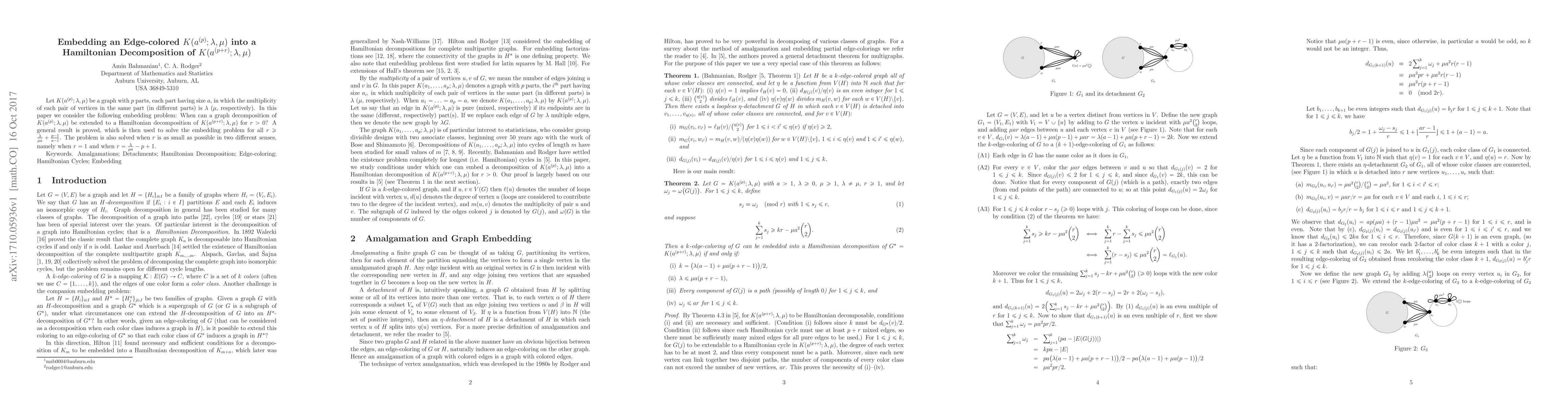 The paper presents a general result for extending a graph decomposition of $K(a^{(p)};\lambda,\mu )$ to a Hamiltonian decomposition of $K(a^{(p+r)};\lambda,\mu )$ for $r>0$, using a construction involving vertex attachments and loop coloring.