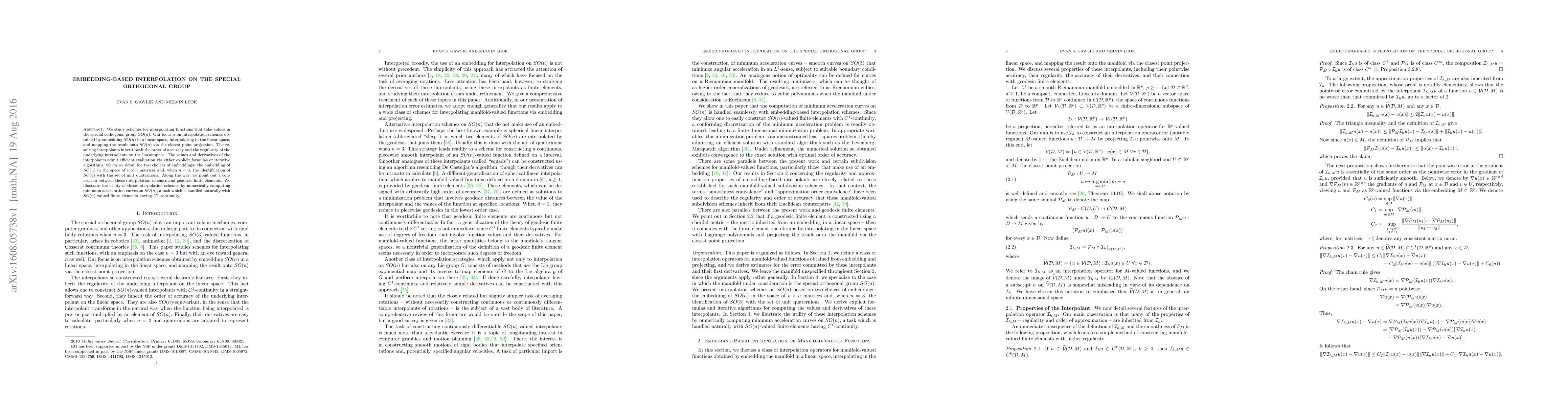 Researchers develop interpolation schemes for functions on the special orthogonal group $SO(n)$, which inherit accuracy and regularity from underlying linear space interpolants, offering efficient evaluation methods.