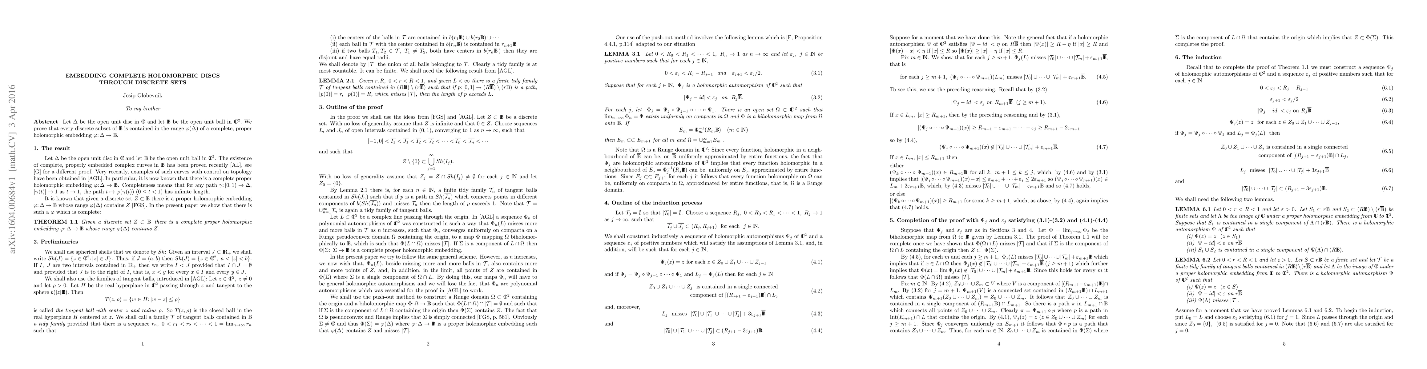 A research paper proves that every discrete subset of a 2D open ball can be embedded in a holomorphic function from a complete 1D disc, showing a connection between complex geometry and analysis.