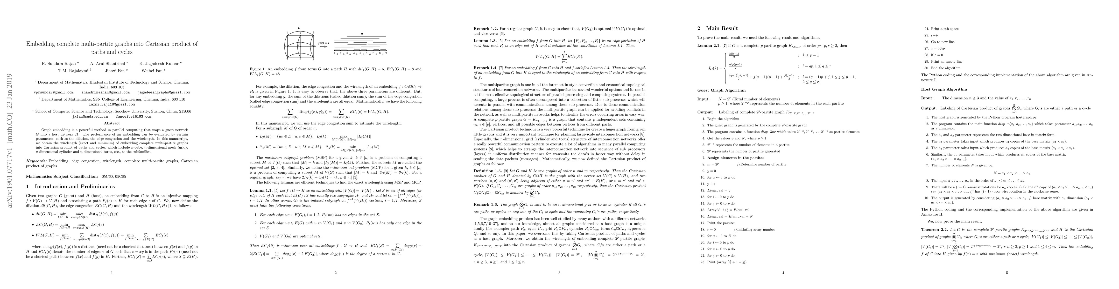 This paper investigates the wirelength of embedding complete multi-partite graphs into Cartesian products of paths and cycles, focusing on optimizing performance metrics like dilation, edge congestion, and wirelength for networks such as $n$-cubes and $n$-dimensional meshes. The study provides exact and minimum wirelength solutions for these embeddings.